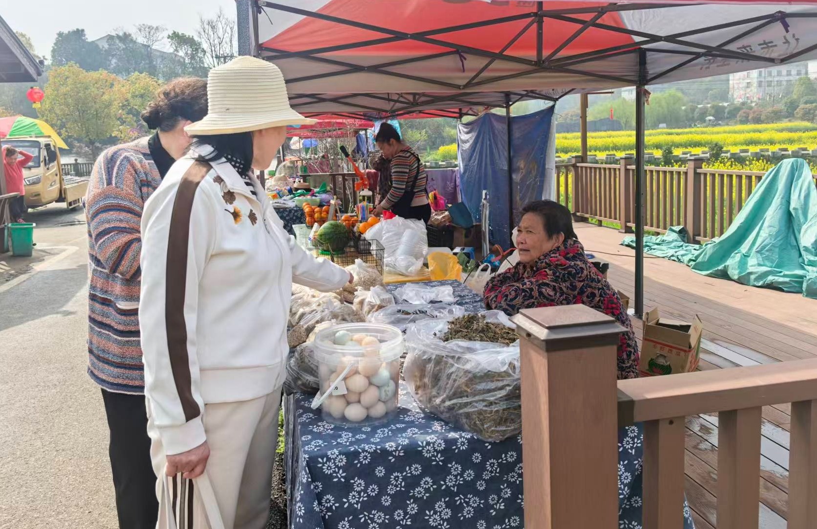 黄庭文的摊位虽不大,却是他“家门口挣钱”的生动写照。像他一样,花海沿线80%以上的摊主都是本地农户,以往这些农特产要么自用,要么赶集卖,如今在家门口就能变成“真金白银”。