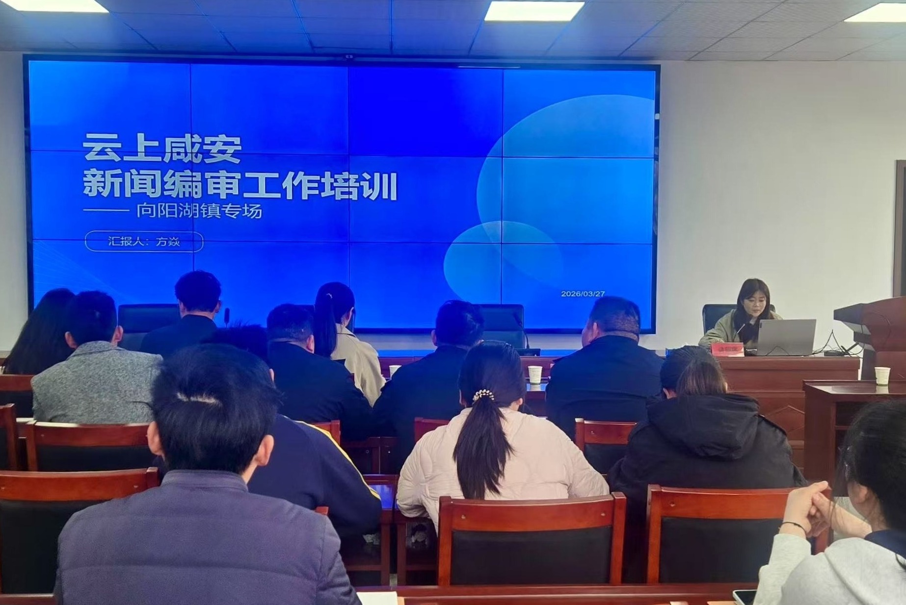 云上咸安报道 3月27日下午,向阳湖镇会议室内气氛热烈,一场干货满满的宣传业务培训正在进行。这是咸安区融媒体中心“融媒赋能·双向奔赴”基层行活动的第三站,通过面对面授课、手把手指导,切实提升基层通讯员的新闻宣传能力,为乡镇宣传工作注入新动能。