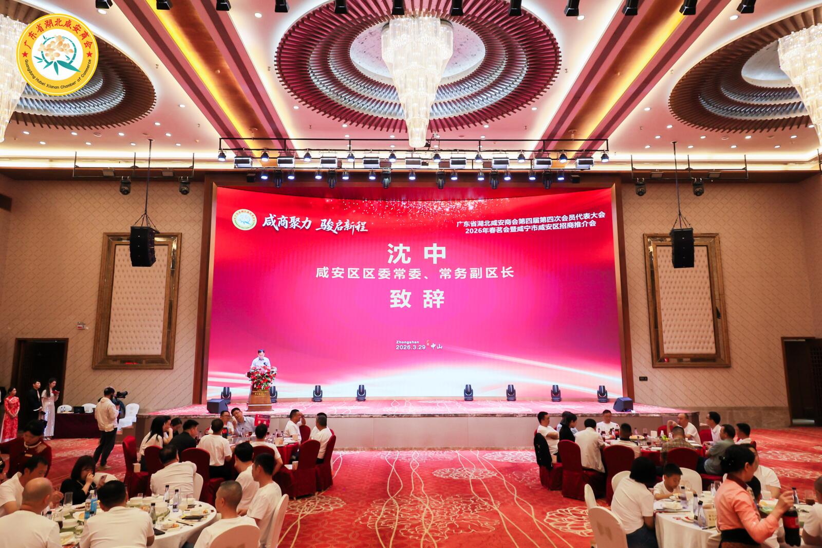区委常委、常务副区长沈中在致辞中,对广东省咸安商会为粤咸两地交流合作搭建桥梁、为咸安发展牵线搭桥的努力与贡献表示感谢,向长期扎根大湾区、拼搏奋斗且心系桑梓的在粤咸商致以诚挚问候。他表示,咸安永远是咸商的坚实后盾,区委、区政府将以最优的营商环境、最实的扶持举措、最贴心的政务服务,为返乡企业铺路子、搭台子、解难题。同时期盼广大咸商当好咸安发展的“桥梁纽带”“创业伙伴”和“代言人”,把大湾区的先进理念、优质资源、高端人才带回咸安,推动更多优质项目、先进技术落地家乡。