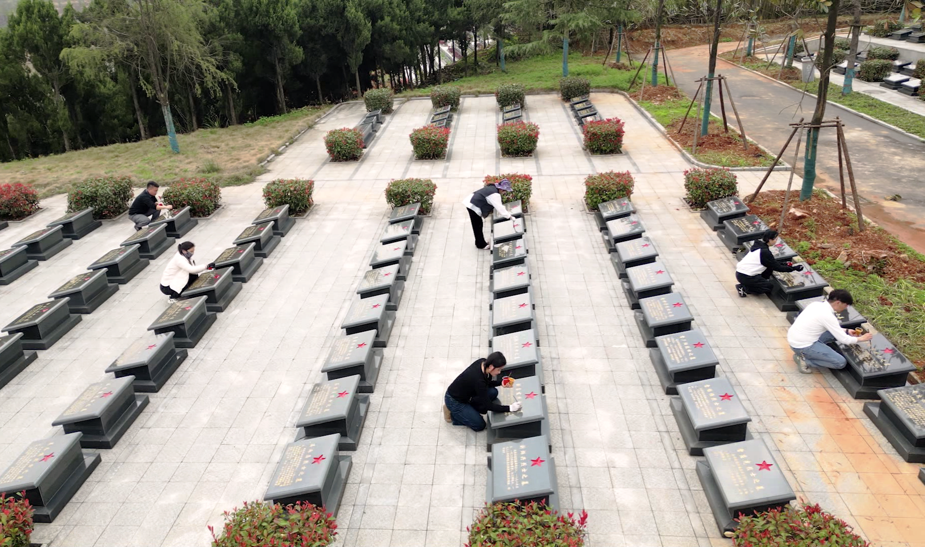 据了解,由于受风雨侵蚀,鄂南烈士陵园部分墓碑存在字迹风化、褪色等问题,日常维护中的专业描金工序较为复杂。此次年轻画家们的加入,不仅弥补了人手和专业上的不足,也让这份缅怀多了一份青春的底色。