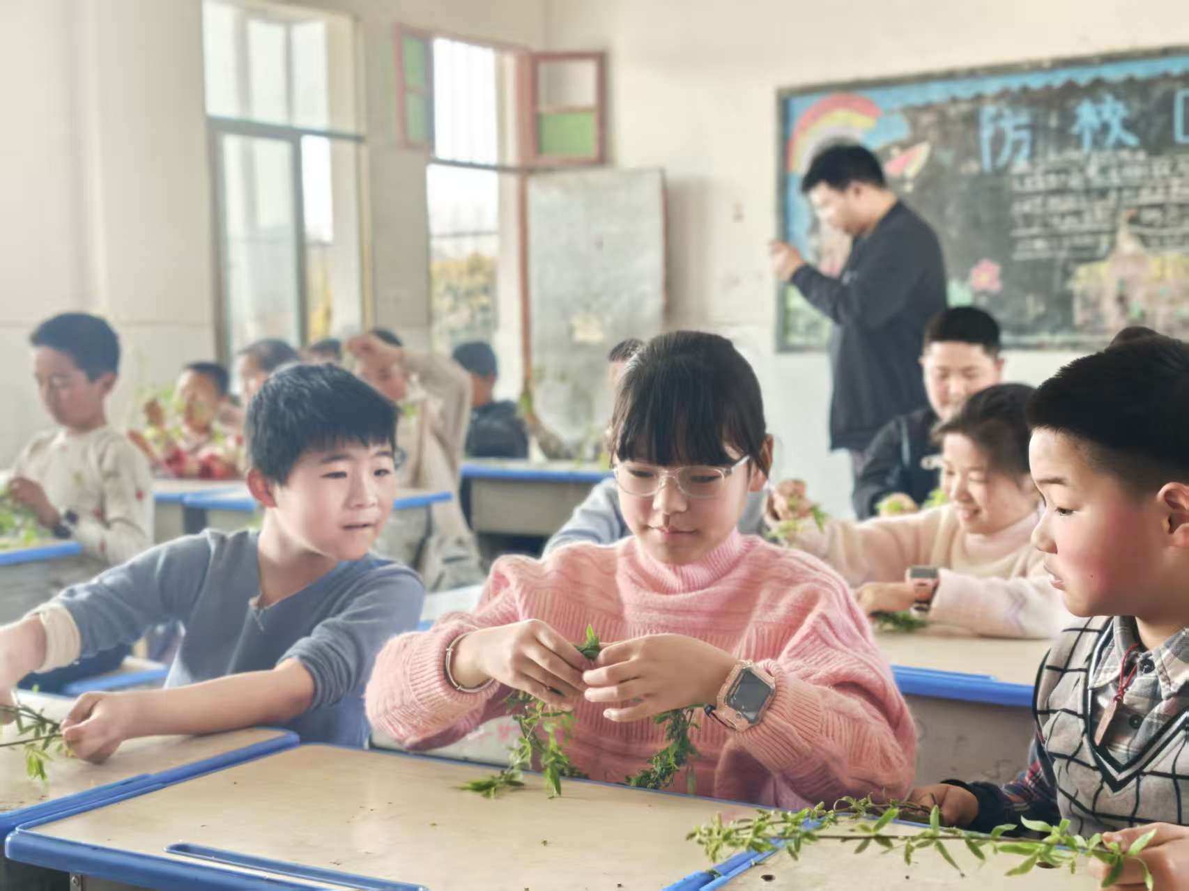 “清明时节雨纷纷,路上行人欲断魂。”活动在清脆的童声中拉开帷幕,学生们深情朗诵经典诗篇《清明》,在诗词韵律中体悟清明追思的文化内涵。随后,在志愿者指导下,孩子们动手编织柳环,将嫩绿的柳条绕成环状戴在头上,亲身实践“清明戴柳”的传统习俗。