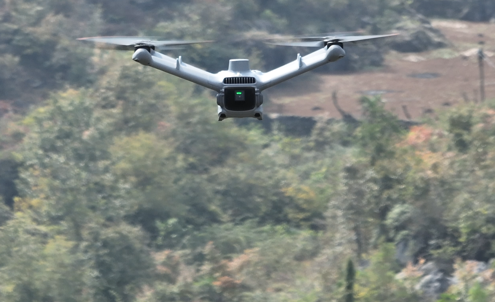 “起飞!”随着操作员一声指令,一架无人机从桂花镇的一处临时起降点腾空而起,对周边林地进行全方位巡航。