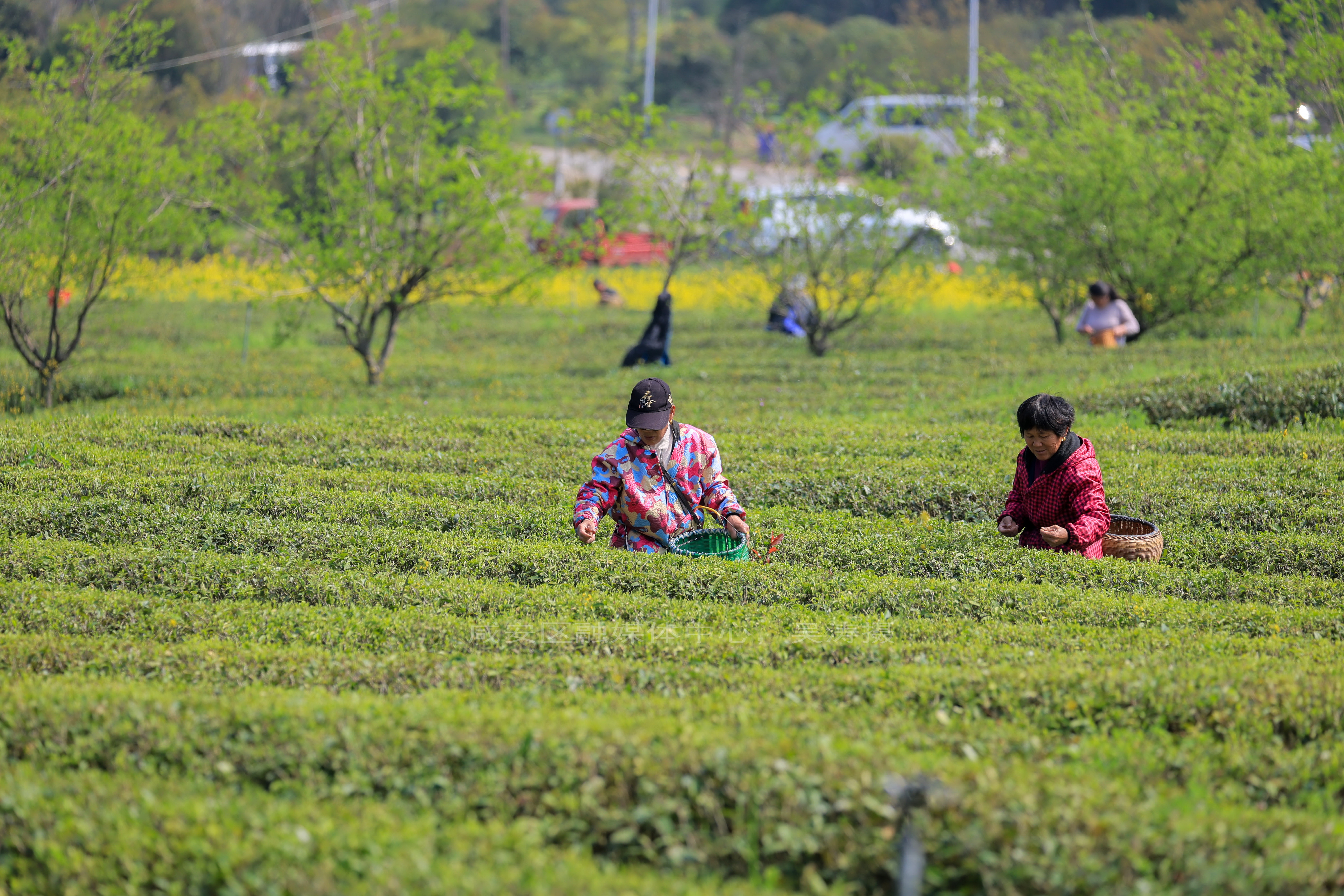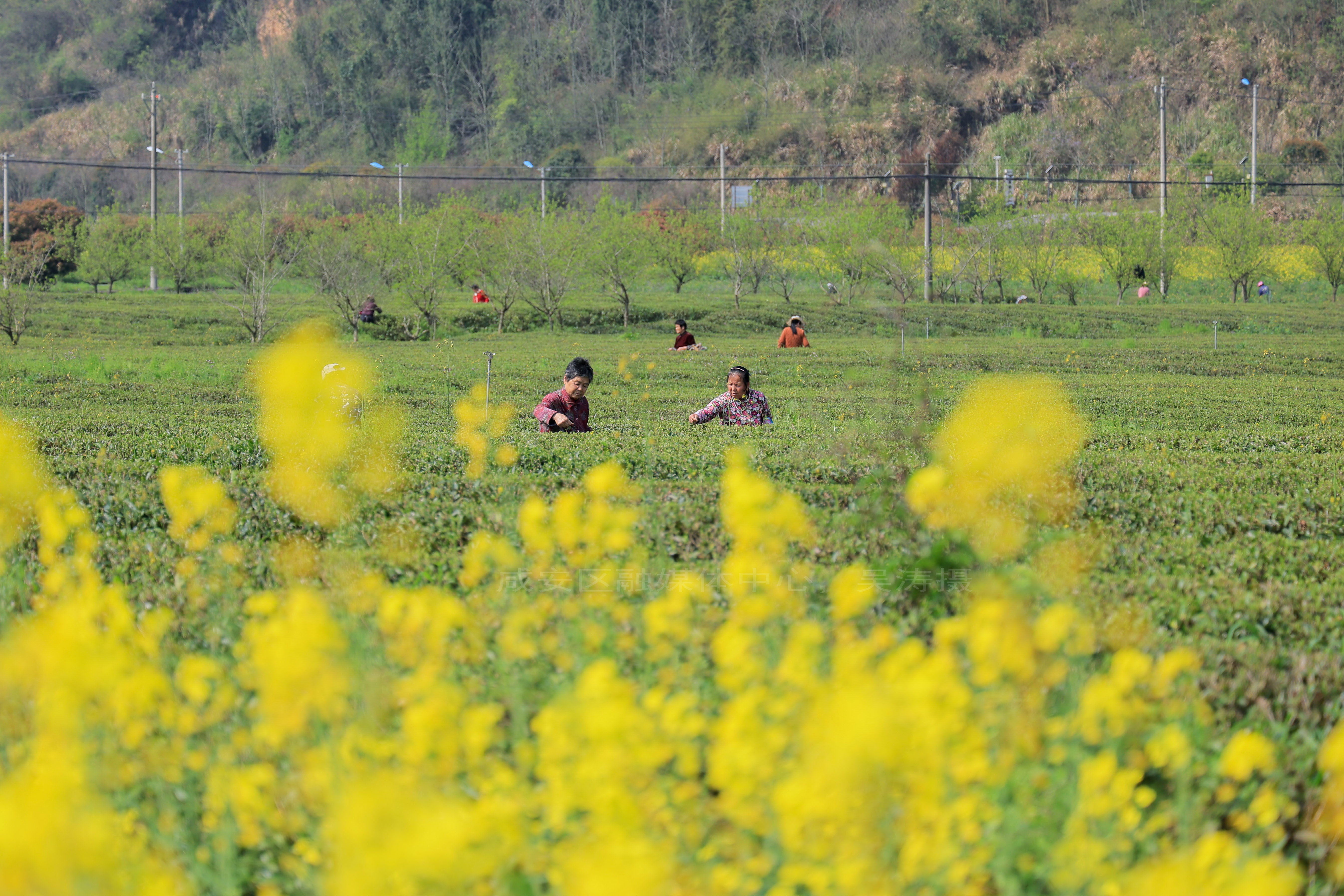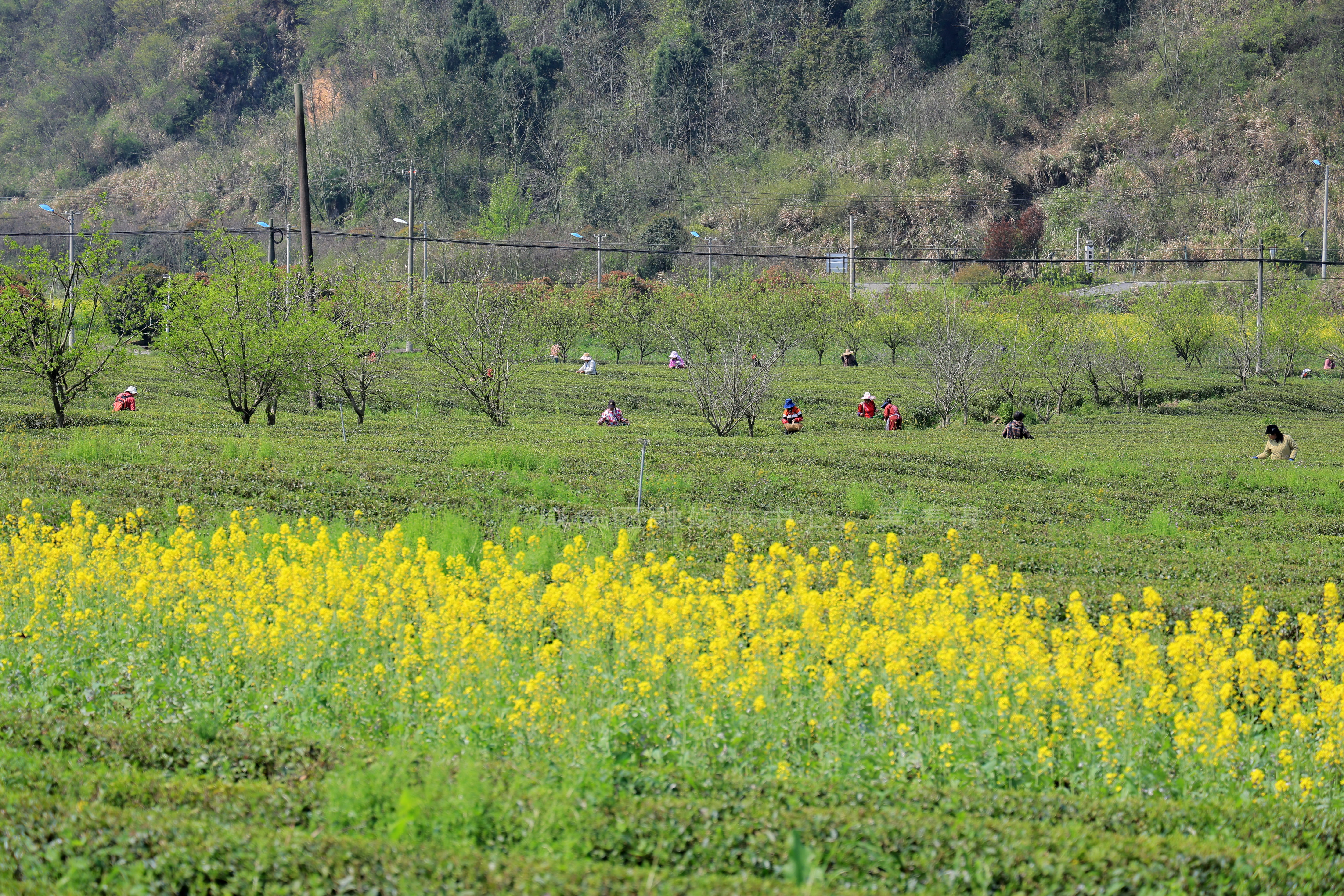 云上咸安报道 4月1日,咸安区大幕乡西山下茶叶基地迎来春茶采摘季。漫山茶园绿意盎然,茶农们穿梭在茶垄间,指尖翻飞采撷鲜嫩茶芽,金黄油菜花与翠绿茶海相映成趣,勾勒出一幅春日丰收的乡村画卷。