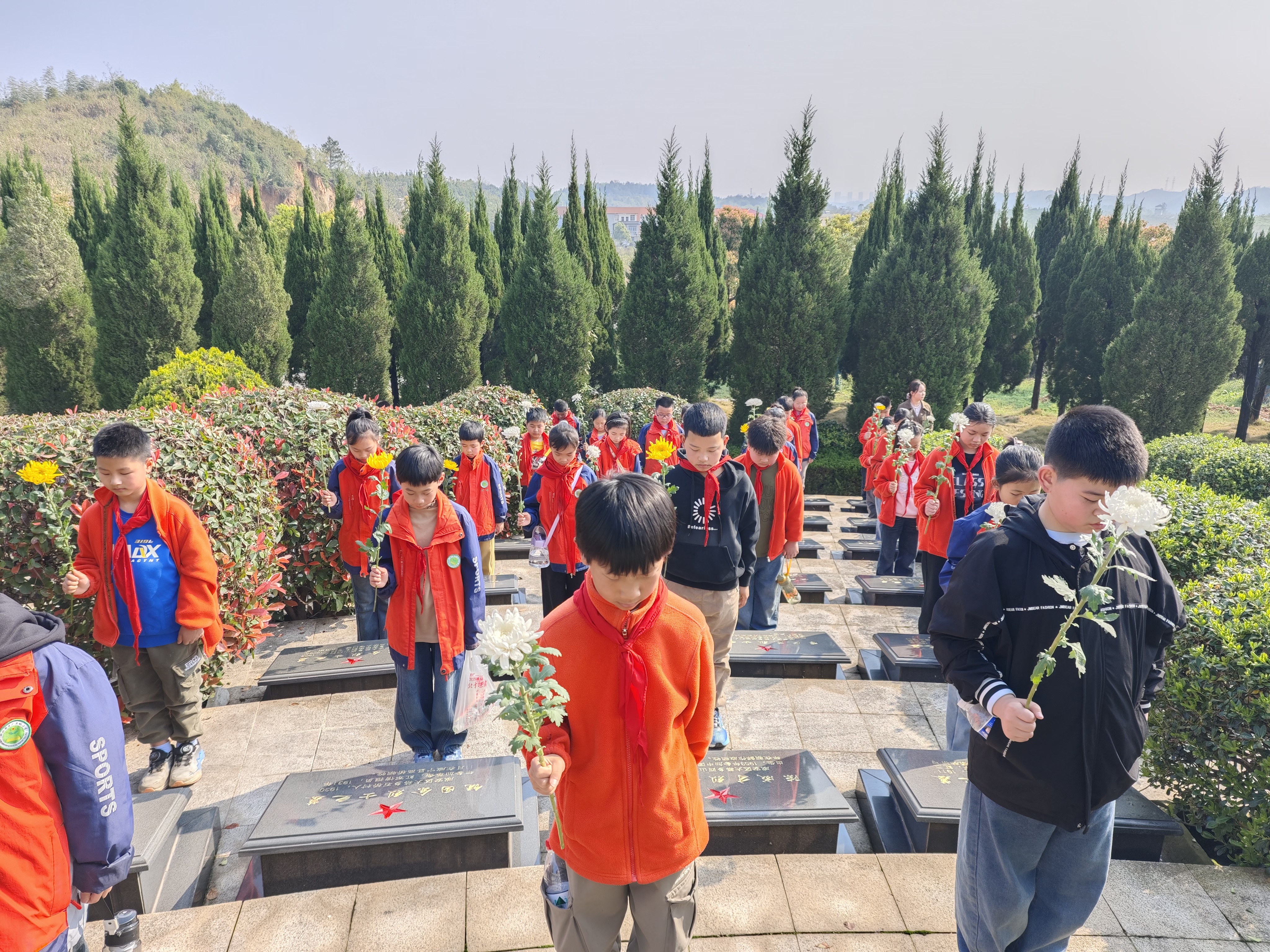 鄂南烈士陵园内,苍松挺立,庄严肃穆。各校师生齐聚烈士纪念碑前,整齐列队、低头默哀,以深沉敬意寄托哀思。各校负责人现场讲述革命斗争历史,勉励师生铭记历史、珍惜当下;学子代表献词抒怀,立下勤学报国的誓言。随后,师生们缓步敬献鲜花,让英烈精神根植心底。