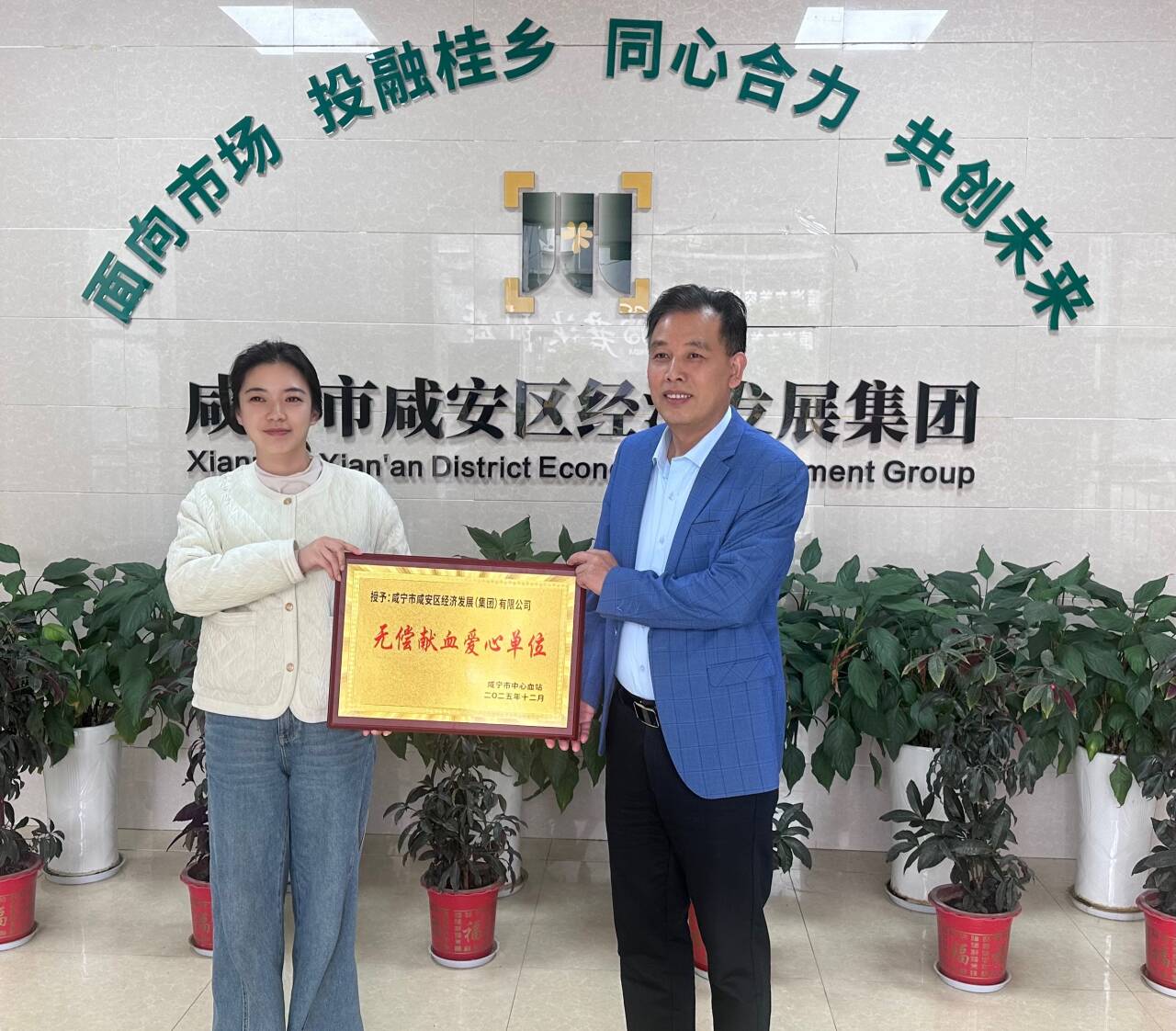云上咸安报道 4月15日,咸宁市中心血站赴咸安区经发集团举行授牌仪式,为该企业颁发“无偿献血爱心单位”奖牌,致谢其长期以来对无偿献血事业的支持。