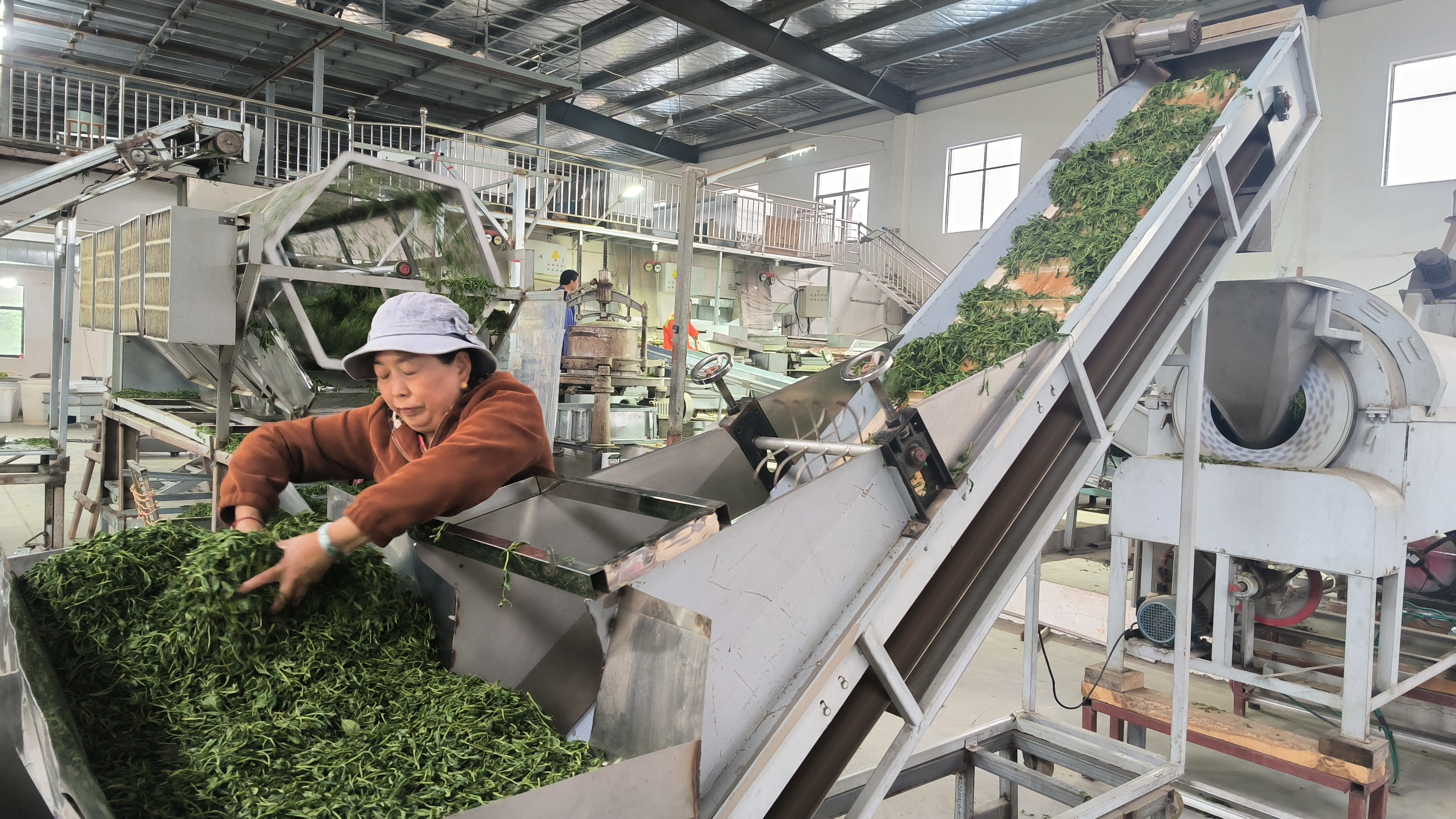 “目前,清明茶生产已结束,我们正全力推进雨前茶生产,雨前茶是优质‘口粮茶’的原料。”张长川介绍,过去受限于大型加工装备,人力成本高,只能小规模生产。公司历经两年研发,将名优茶工艺移植到大宗茶生产线,让产品具备了高端名优茶的风味特质。