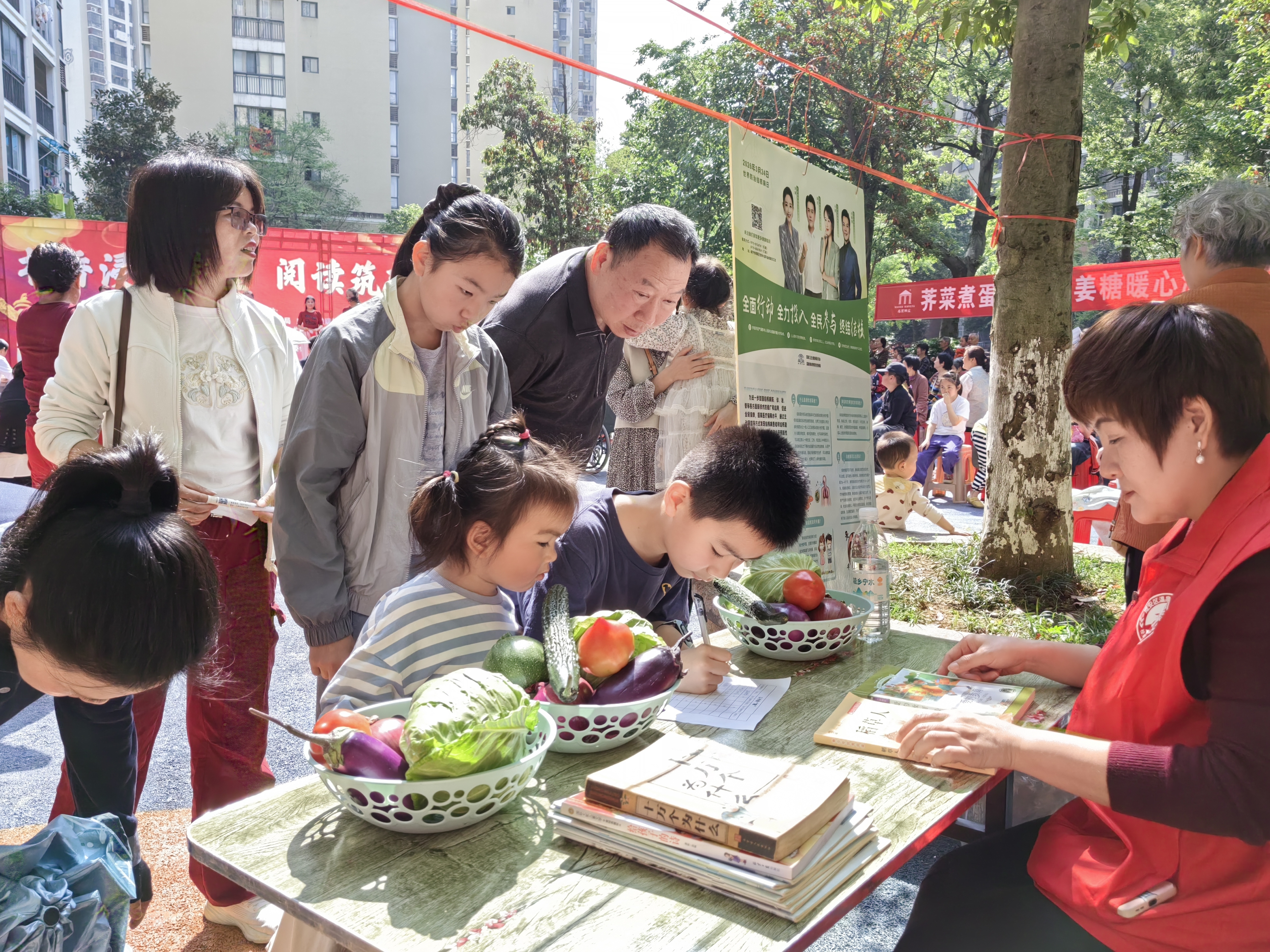 启动仪式后,“以书换蔬”环节成为全场焦点。居民们带着家中闲置的书籍排队兑换新鲜时令蔬菜,居民王大姐拎着刚换的包菜笑道:“孩子看过的绘本堆了一摞,放着占地方,拿来换蔬菜,回去炒着吃,书放到书屋,别的孩子还能接着看,一举两得。”据悉,回收的图书经整理后将补充进书屋,实现知识循环。