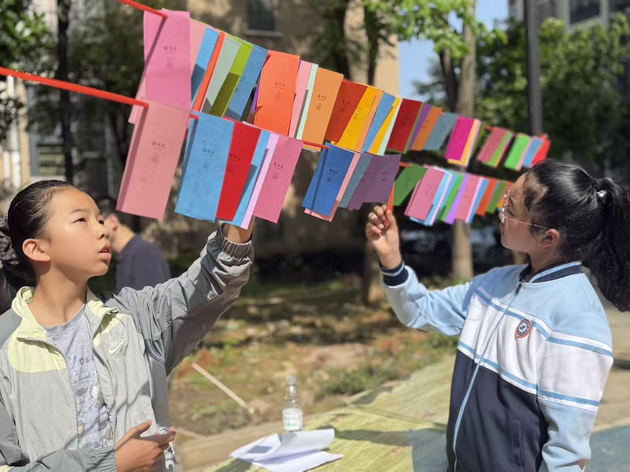 互动体验区同样人气高涨。“趣味猜书名”吸引了众多居民抢答比拼;漆扇、书签DIY及趣味拓印区域,在“桂乡管家”指导下,居民们完成了200余件手工作品;孩子们则在“报纸跑酷”“趣味飞行棋”中分组协作,欢笑声此起彼伏。