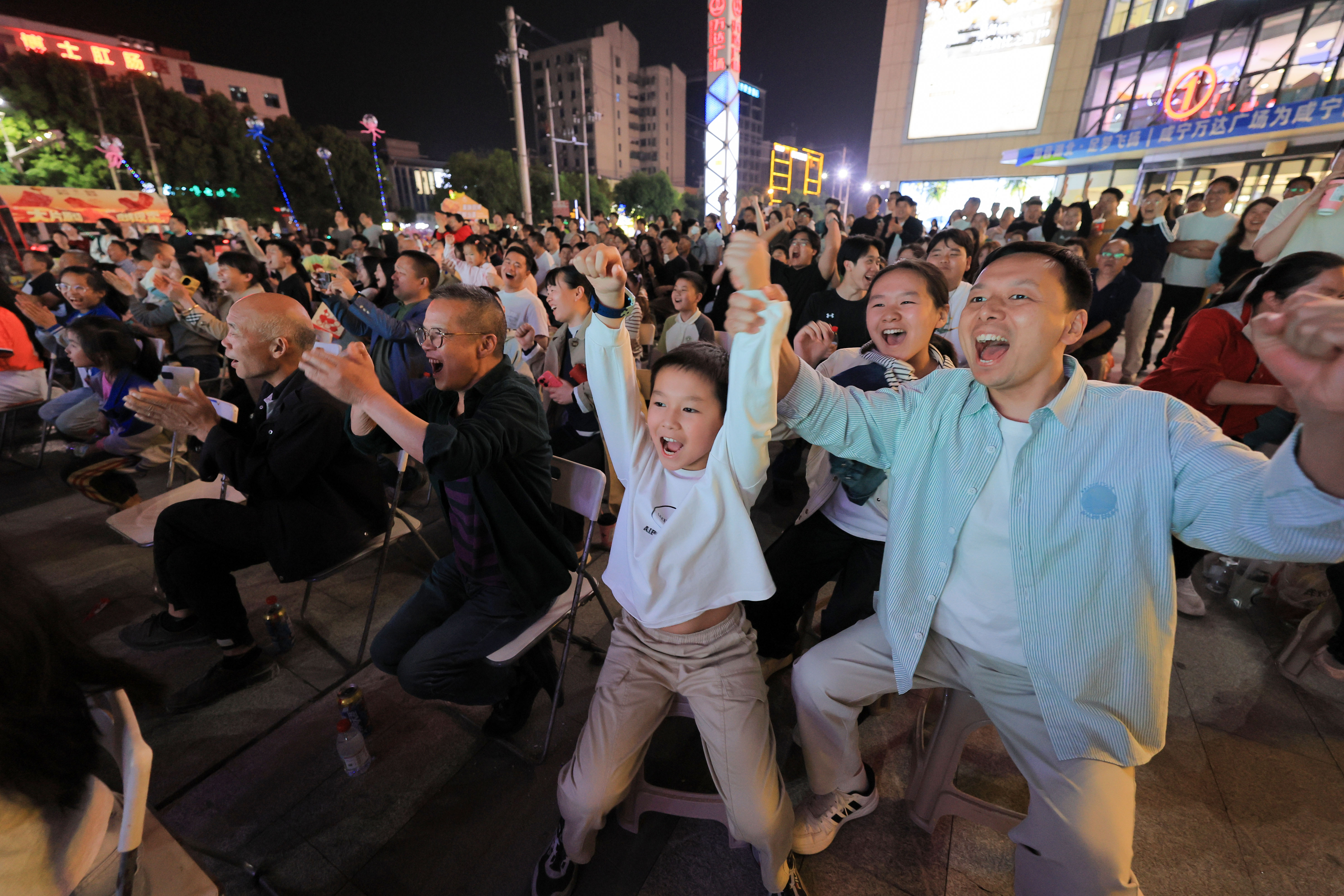 云上咸安报道 4月18日晚,2026年湖北省城市足球联赛(“楚超”)迎来咸宁主场首战,咸宁队对阵随州队,众多咸宁球迷聚集于万达广场和望月街大屏幕前观看直播,现场呐喊声、助威声此起彼伏,大家用热烈的助威声为家乡球队加油鼓劲,共赴一场足球与烟火气的双向奔赴。