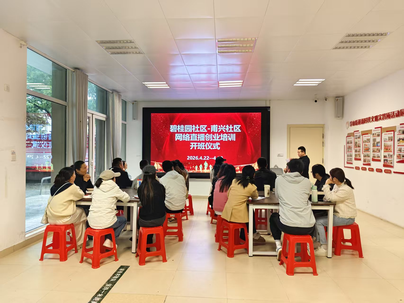 云上咸安报道 4月22日,由咸宁市人社局主办、湖北直播电商职校承办的网络直播电商创业培训班,在浮山街道新时代文明实践所正式开班。来自碧桂园社区、甫兴社区的20余名居民齐聚现场,正式开启数字技能学习之旅。