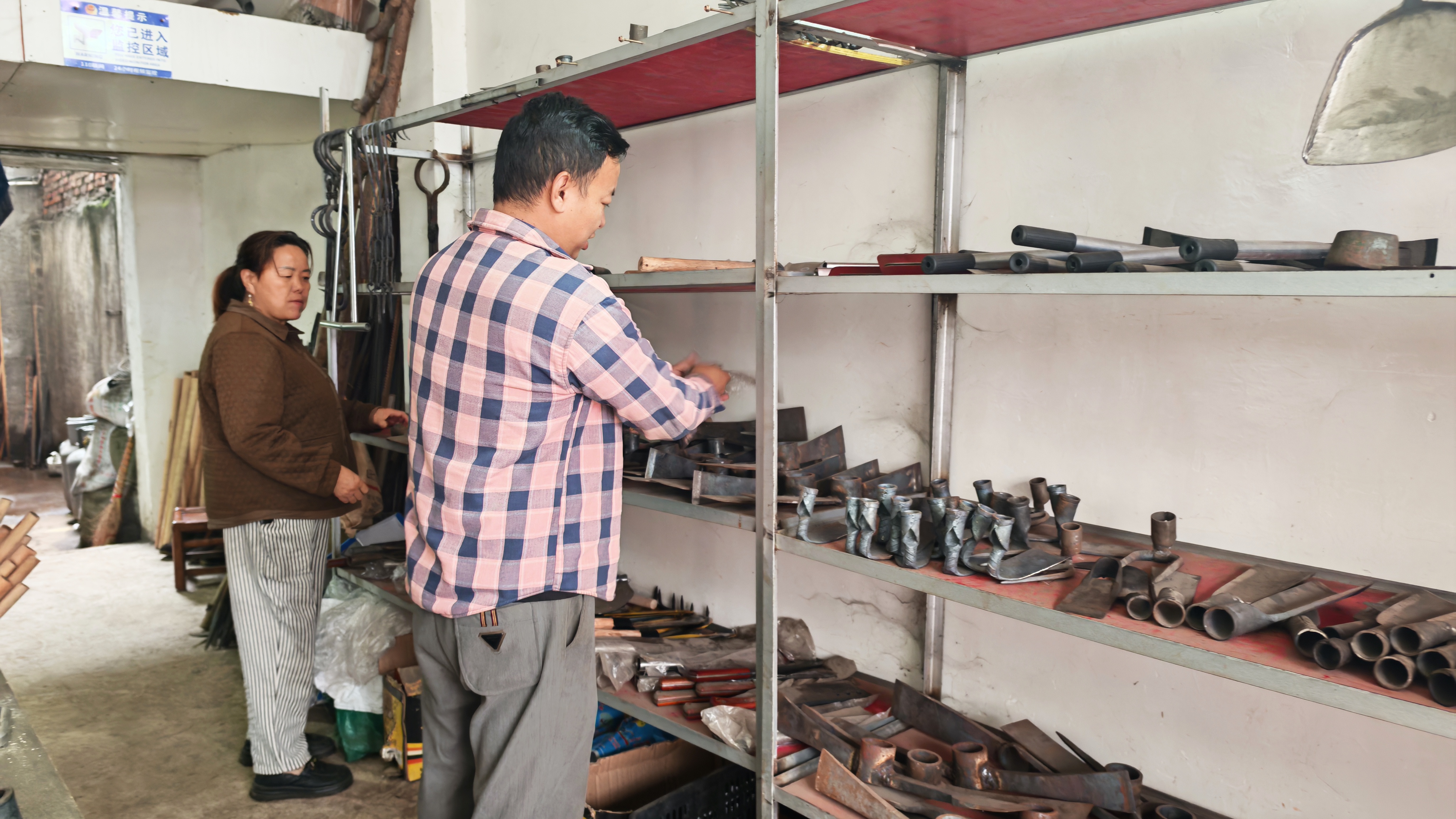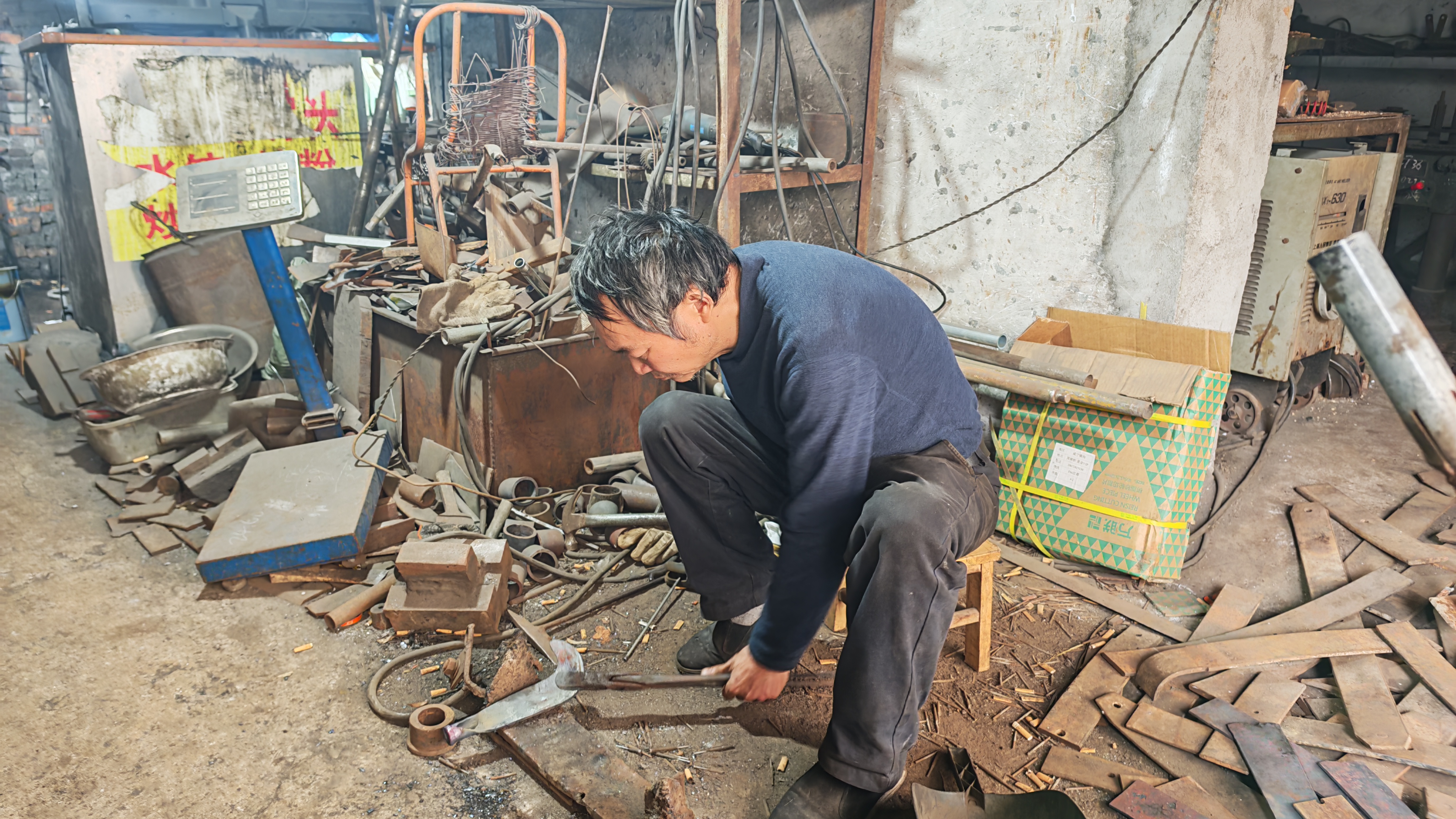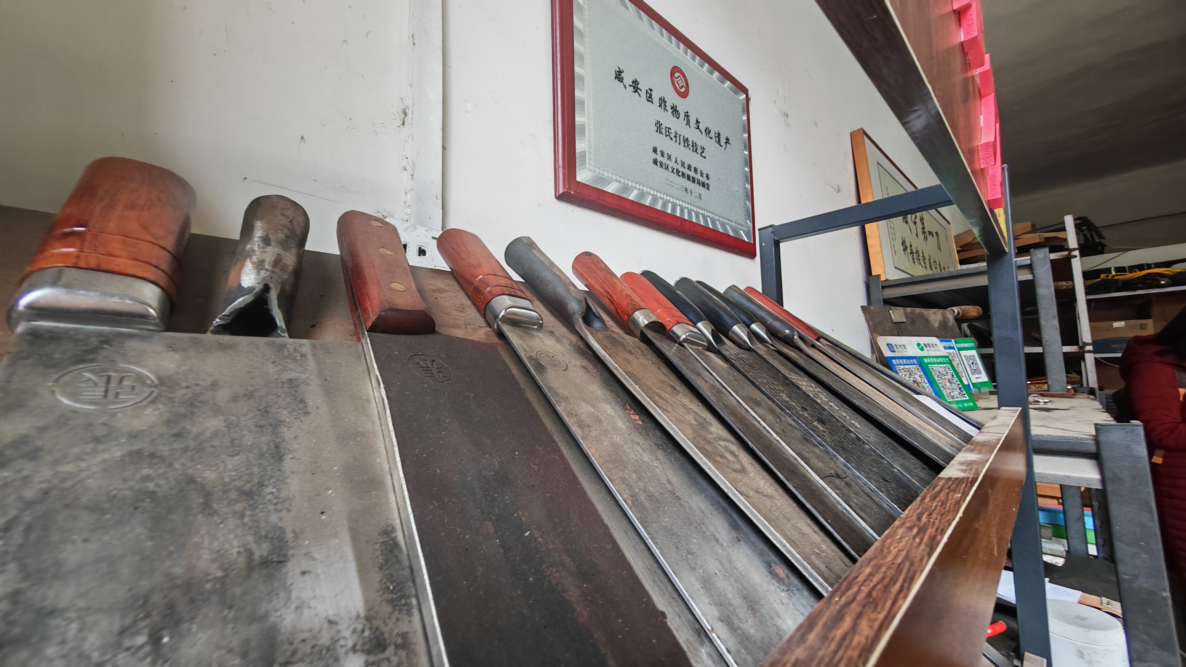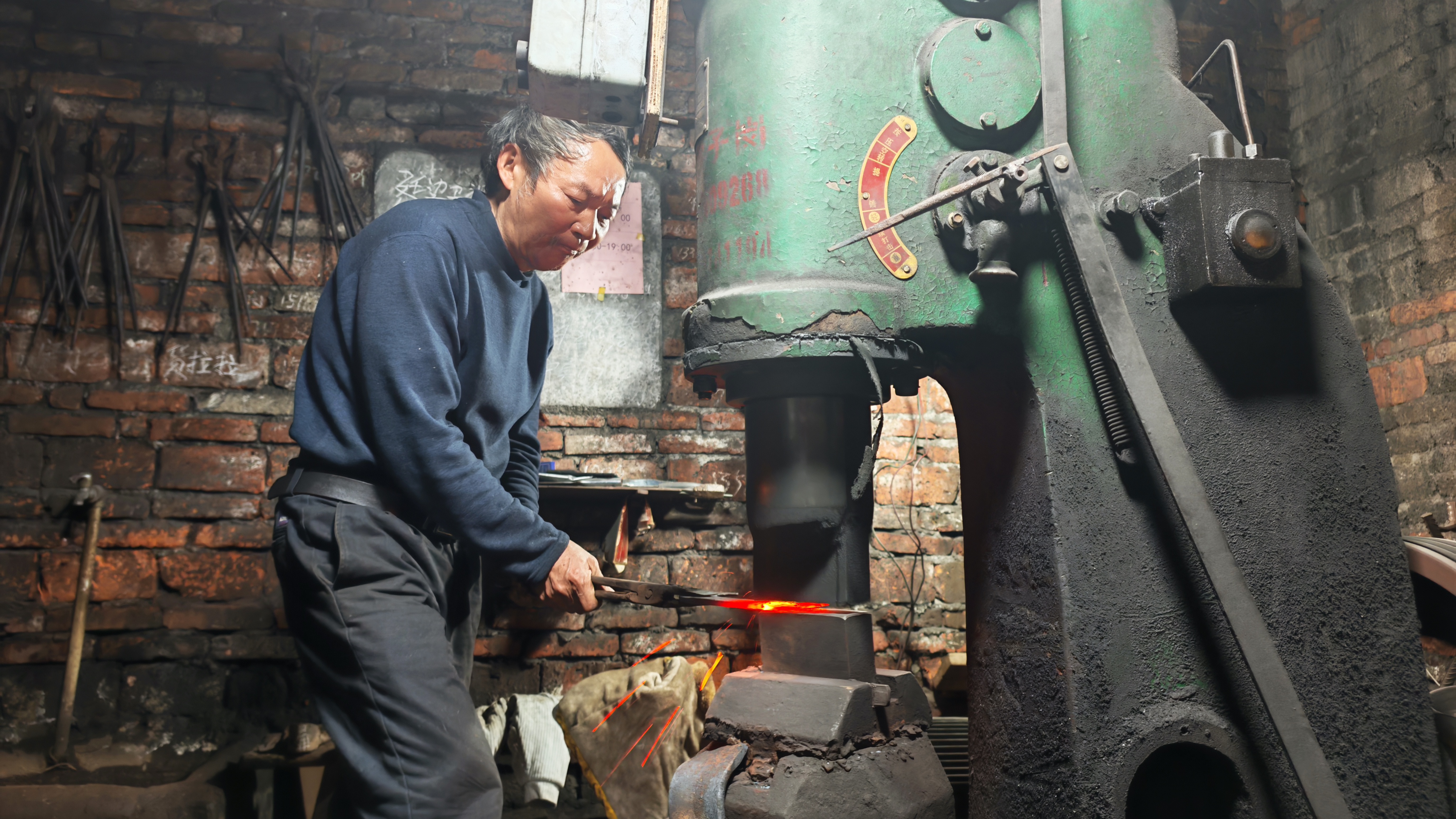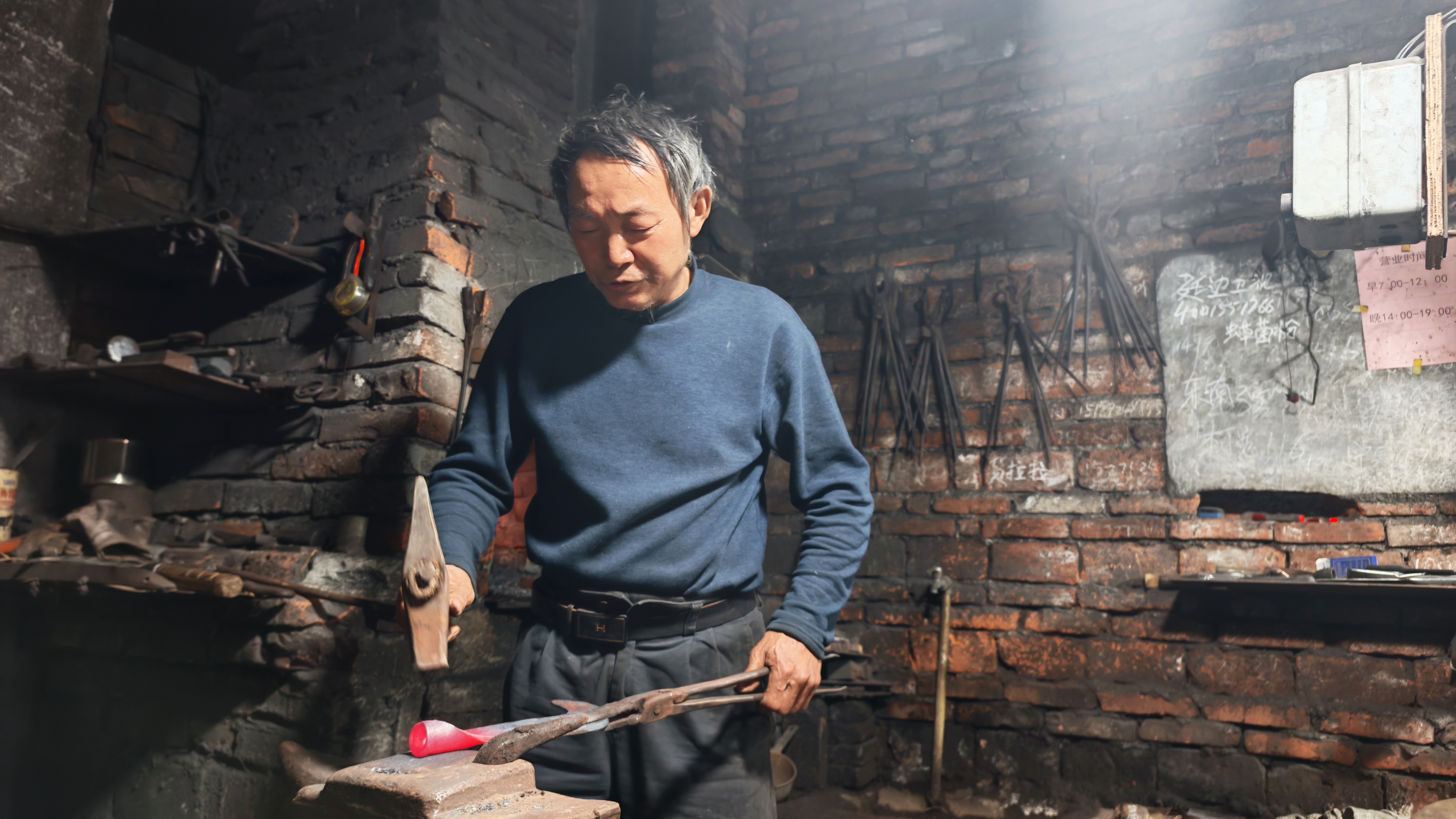 现在,张氏铁铺不光打农具,锄头、砍柴刀、家用菜刀、厨房用具……啥都打。生意还分季节:元宵节后两个月农具卖得好,年前一个半月菜刀是主角。