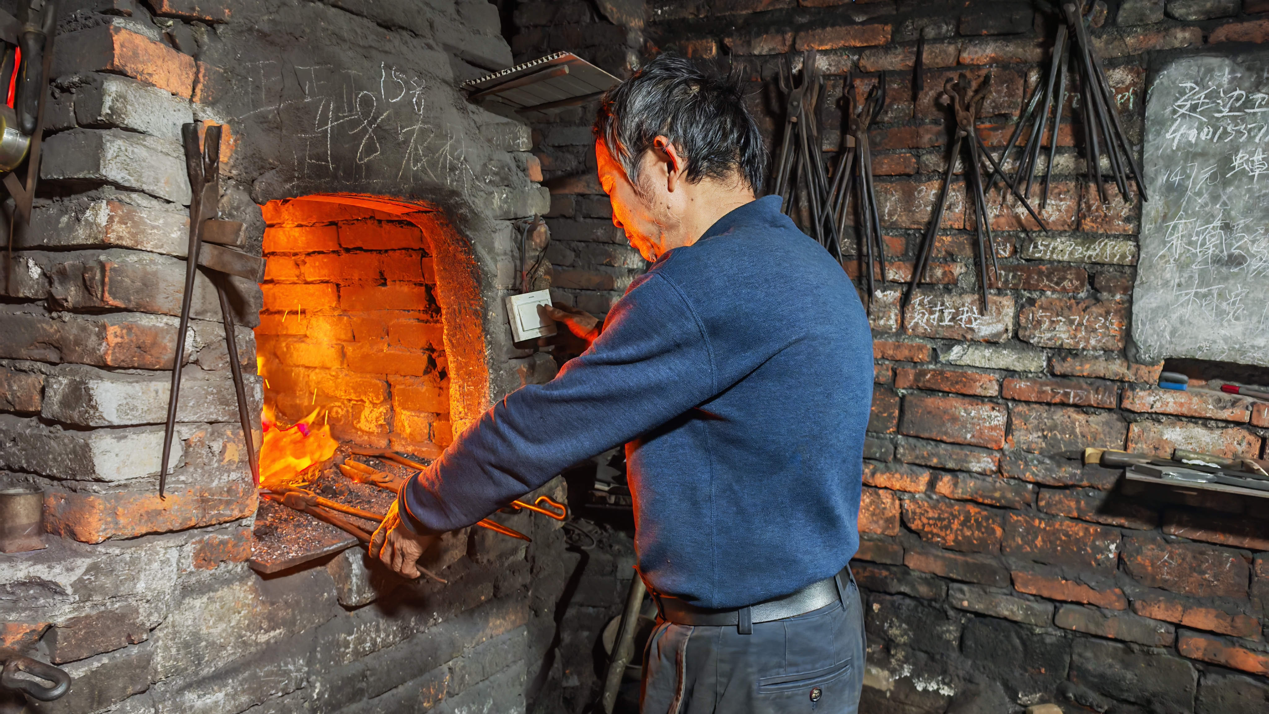 打铁这行当,老话说排在“人生三苦”的头一位,又累挣钱也不多,如今越来越冷门了。但张海洋心中有数:“普通农具以后需求肯定越来越少,我们打算往后做高端定制。”他指着店里几把客户定制的刀具说,“这些独一无二的东西,才是以后的方向。”