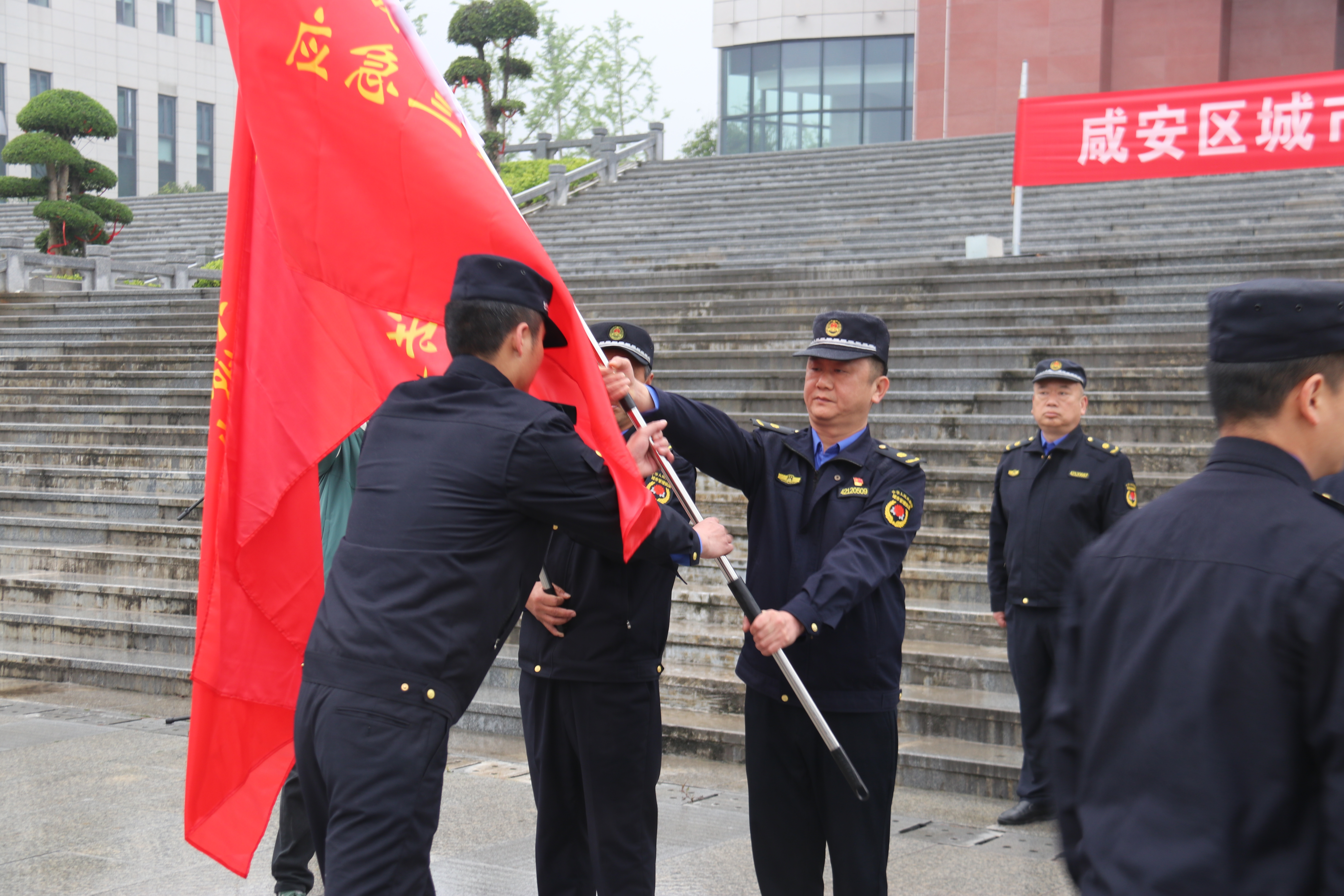 4月23日上午,大练兵集训启动仪式暨城市管理应急大队成立授旗仪式在区文体中心广场举行。全局干部职工组成6个方阵,统一着装、精神抖擞。该局主要负责人作动员致辞,深刻阐明大练兵集训与应急队伍建设的重要意义,并对全体参训人员提出勤学苦练、履职尽责、实干担当的明确要求。随后,依次进行大队授旗及下辖6个应急分队逐一授旗,鲜红队旗正式交接,标志着咸安城管应急处突专业队伍正式组建成立。仪式结束后,队列训练随即展开。
