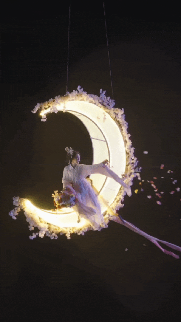 在中国嫦娥文化之乡咸安,邂逅“嫦娥奔月”飞天。高空威亚凌空飞舞,瀑布烟花倾泻而下,非遗打铁花璀璨绽放,湖面与夜空交相辉映,视觉震撼直击人心。