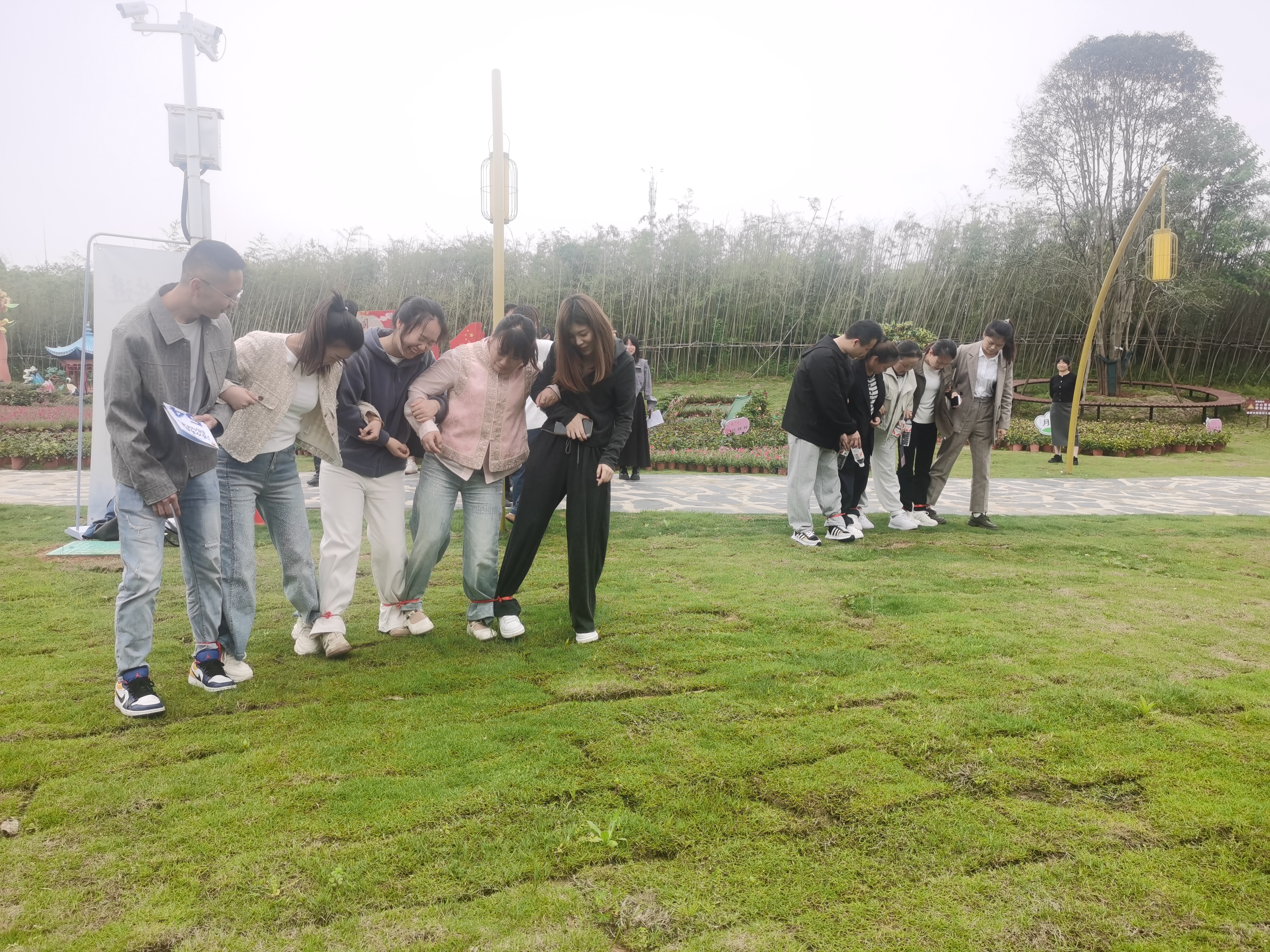 随后,全体人员统一乘车前往大洲湖桂花赏心谷开展徒步打卡。大家沿着规划路线依次完成筑梦启航、协作共进、乘风破浪、出彩青春四大主题打卡点:在城市展厅写下科创寄语,在灯展区开展团队协作游戏,在游乐场通过趣味互动释放工作压力,在祈福灯树定格青春奋斗身影。全程集运动、交流、互动、励志于一体,充分展现了链上青年昂扬向上、团结奋进的精神风貌。