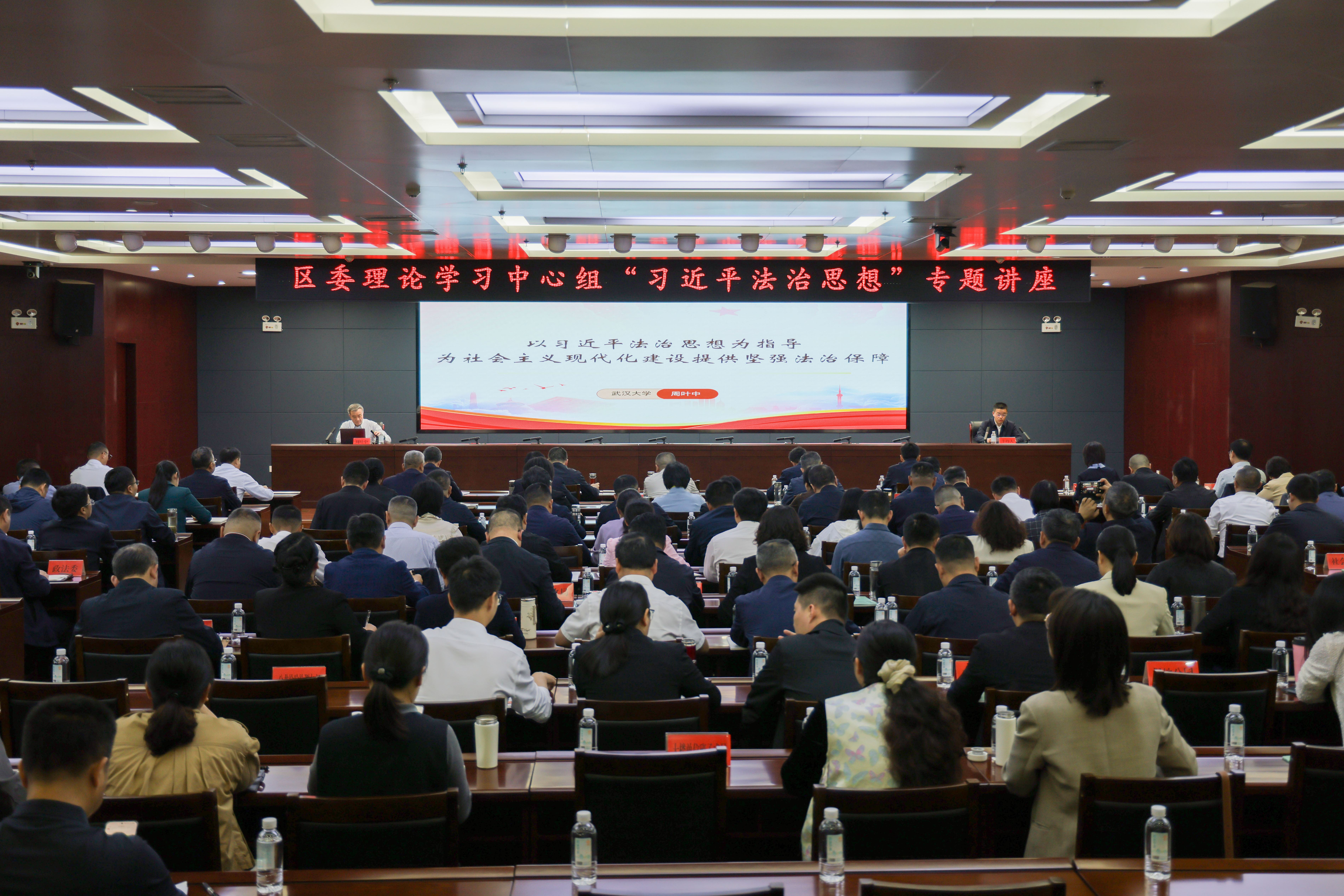 云上咸安报道 4月27日下午,区委理论学习中心组“习近平法治思想”专题讲座在区文体中心举行。特邀武汉大学人文社会科学资深教授、博士生导师周叶中作专题辅导报告。区委书记李军平主持讲座。