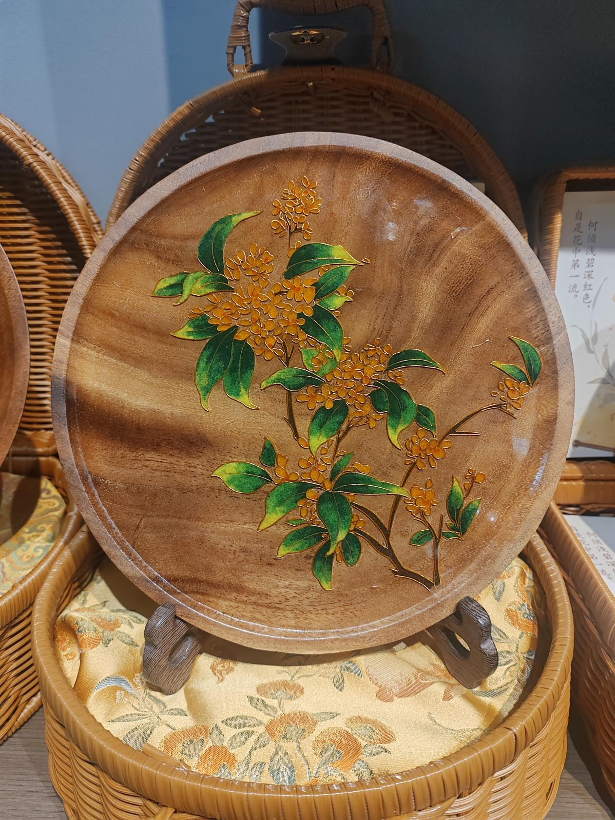 既是可收纳茶点的实用托盘,也是能装点案头的雅致摆件。方寸木盘间,藏着咸宁满城桂香的诗意,也承载着传统工艺的匠心。将咸宁的秋日浪漫与非遗之美一并珍藏,是独属于这座桂花城的雅致伴手礼。