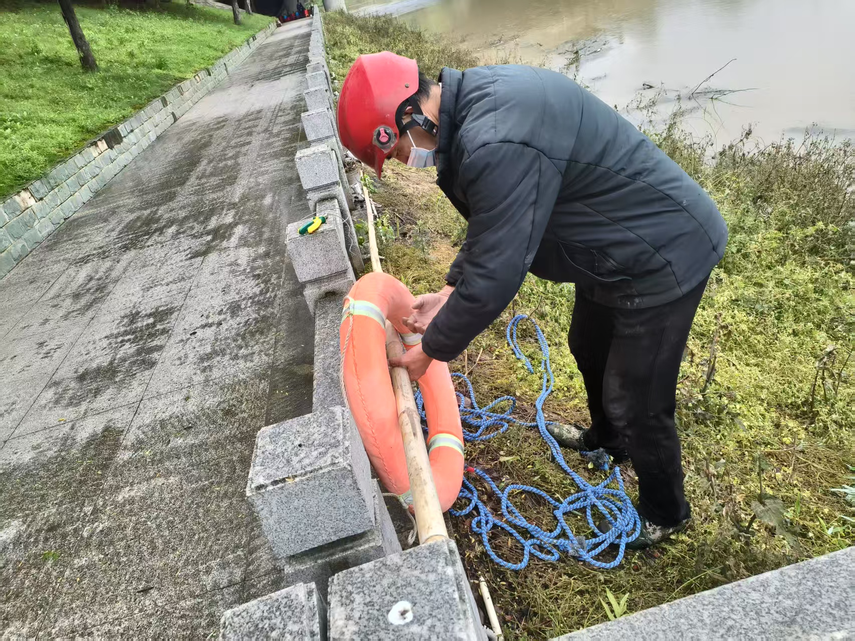 社区工作人员在人流集中区域、临水陡坡、河道弯道等危险点位统一加装救生圈、救生绳等应急设备,补齐更新沿河防溺水警示牌,筑牢防溺水安全防线。现场工作人员同步开展面对面安全宣传,向过往散步群众普及防溺水常识与自救技巧,重点讲解救生设备的重要用途,呼吁大家自觉爱护公共安防器材,不随意损坏、挪用、丢弃,共同守护沿岸安全设施。设施全部补齐到位后,社区实行每日河岸常态化定点巡查,及时排查整改临水风险;同时在居民微信群常态化转发防溺水警示短视频,提前做好节前安全铺垫,并将在“五一”假期期间定时推送防溺水专项安全提醒。
