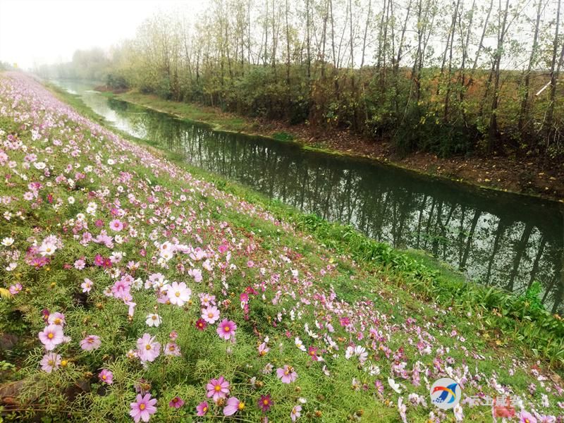 云上咸安报道(记者:葛利利)冬日,沿着咸安区官埠桥镇湖场村滨湖巷渠道附近走一走,白的、粉的、紫红的格桑花开的正旺。港渠里,水正变得清澈灵动,搭配着沿河的靓丽绿道,构成了一副动人的画面。