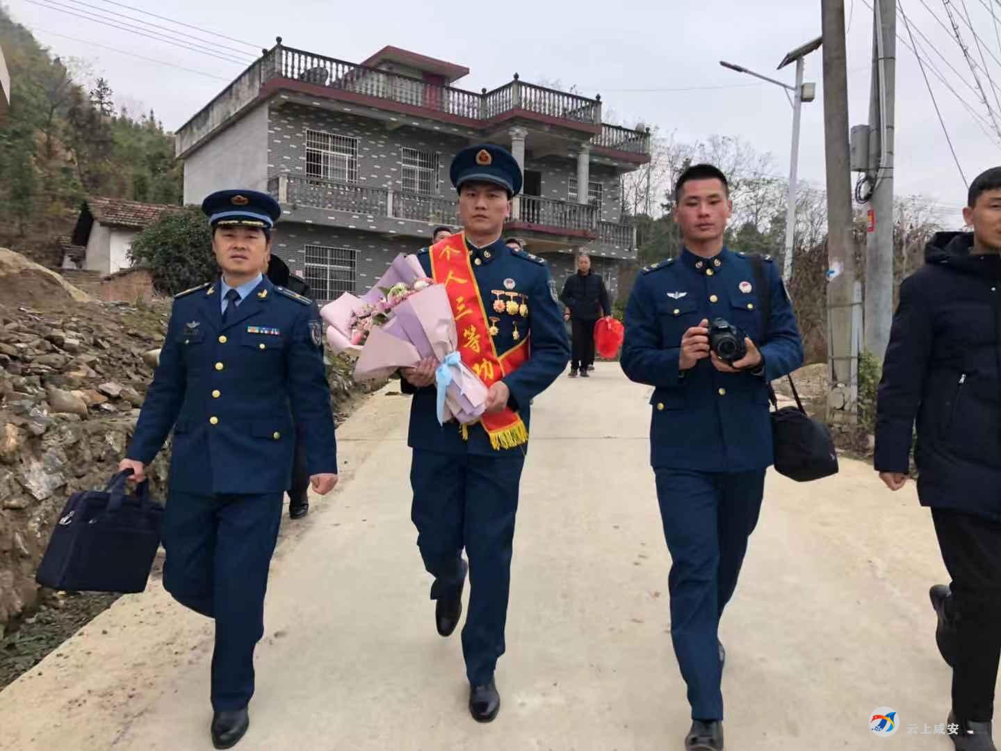 云上咸安报道(记者:夏晖 通讯员:吴建)12月20日早上,咸安区桂花镇政府里迎来了三位特殊的客人,三位客人均来自于英雄的空降兵部队,其中一位95年的小伙子唐旺,就是此次回家探亲送喜报的主角。