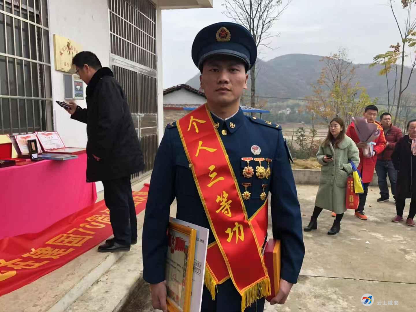 在盘源村委会,同行而来的营长张文彬现场宣读了阅兵联合指挥部对唐旺在新中国成立70周年国庆阅兵中荣立个人三等功的表彰决定,前来围观的村民们也自发的打起了锣鼓庆祝唐旺得此殊荣。