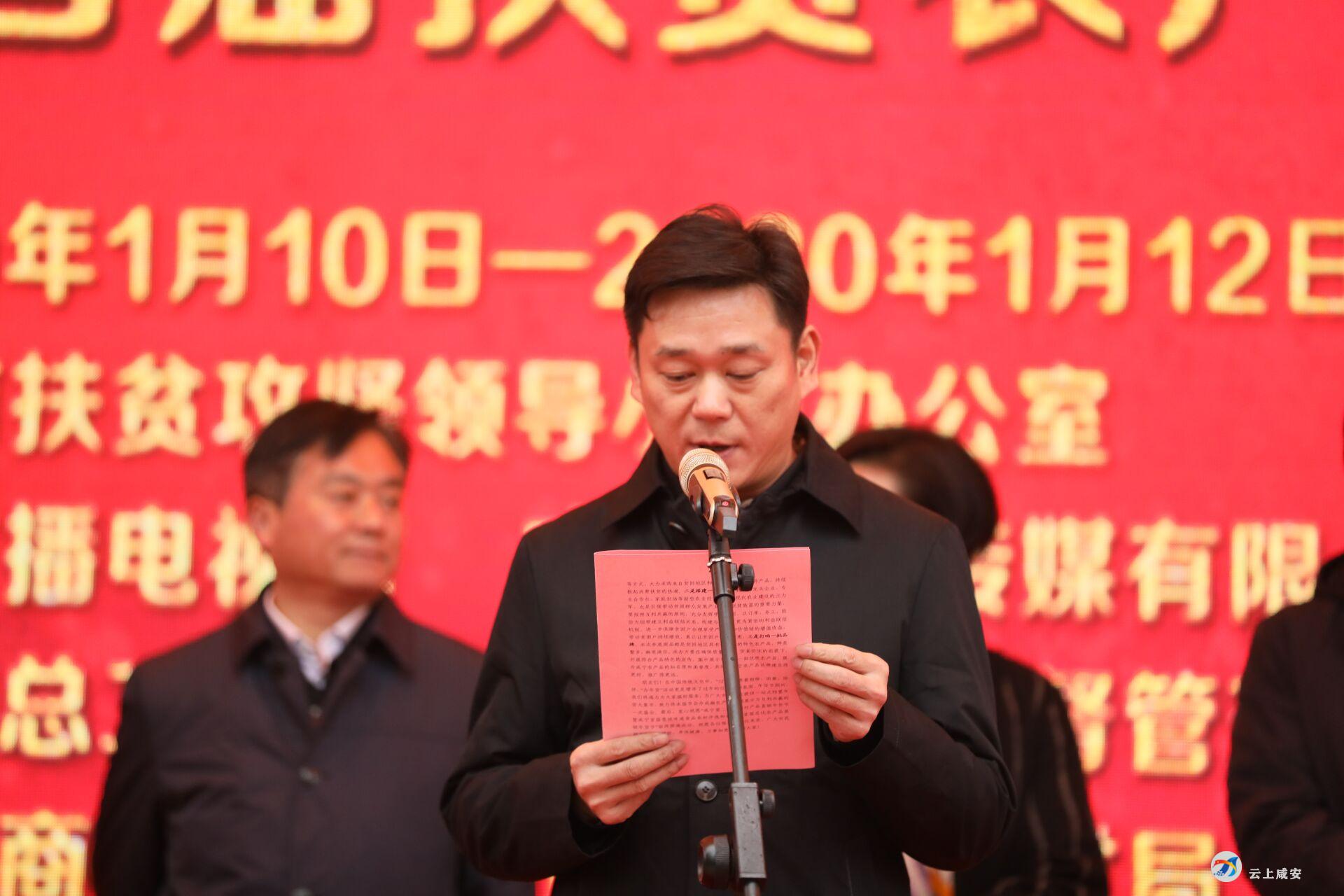 云上咸安报道(记者:夏晖)1月10日,咸宁第二届扶贫产品年货节暨咸宁首届“香城味道”食品食材评选和咸安区首届扶贫农产品展销年货节在咸宁华信农批市场开幕。副市长谭海华宣布活动开幕,区委副书记、区长魏朝东致辞。