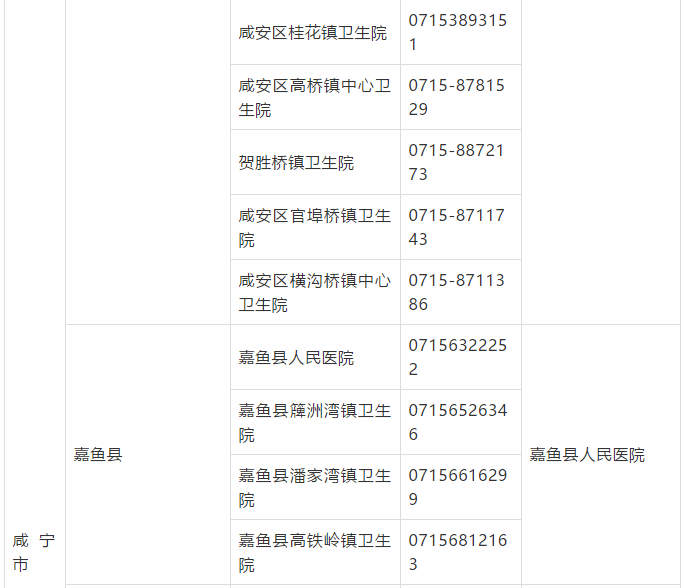 今天下午,湖北省卫生健康委员会在官网公布了“湖北省新型冠状病毒感染的肺炎医疗救治和发热门诊定点医疗机构名单”,覆盖了全省17各市州。咸宁市具体名单如下: