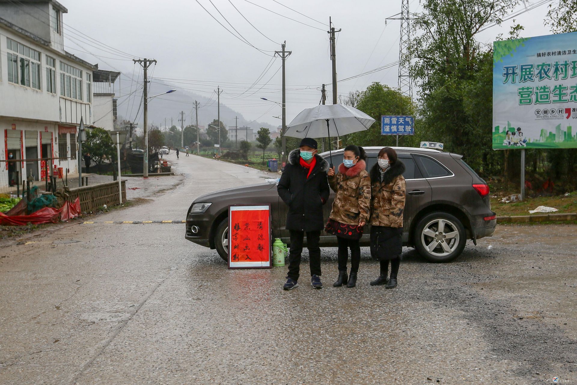 当天上午9时,在桂花镇白沙村,一辆防控督查专车正循环播放,提醒村民带好口罩,减少外出,正确对待疫情防控的重要性。