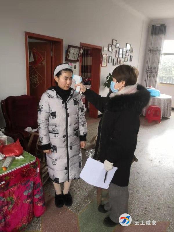 “您的体温正常,请不要出门,主动居家隔离,勤洗手,居家多通风,紧急事情出门记得一定要戴口罩”我们不厌其烦进一户就宣传一户,有热心村民会说“你们村干部大过年的真是辛苦,挨家挨户排查每一个打工回来的人,每天上门为我们量体温,我们倍感温暖”