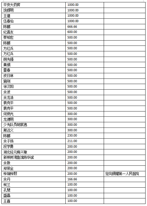 3、捐赠资金:至2月11日,拨定向捐赠资金、市第一人民医院、其余各医疗机构及购买防控物资等13257792元,结余2155880.96元。