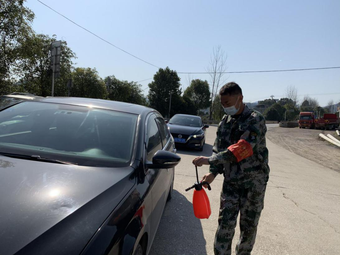 刘琦为通行车辆消毒