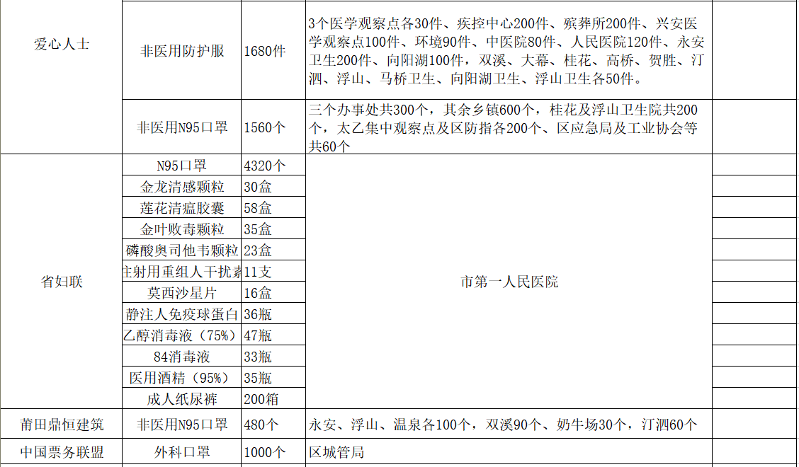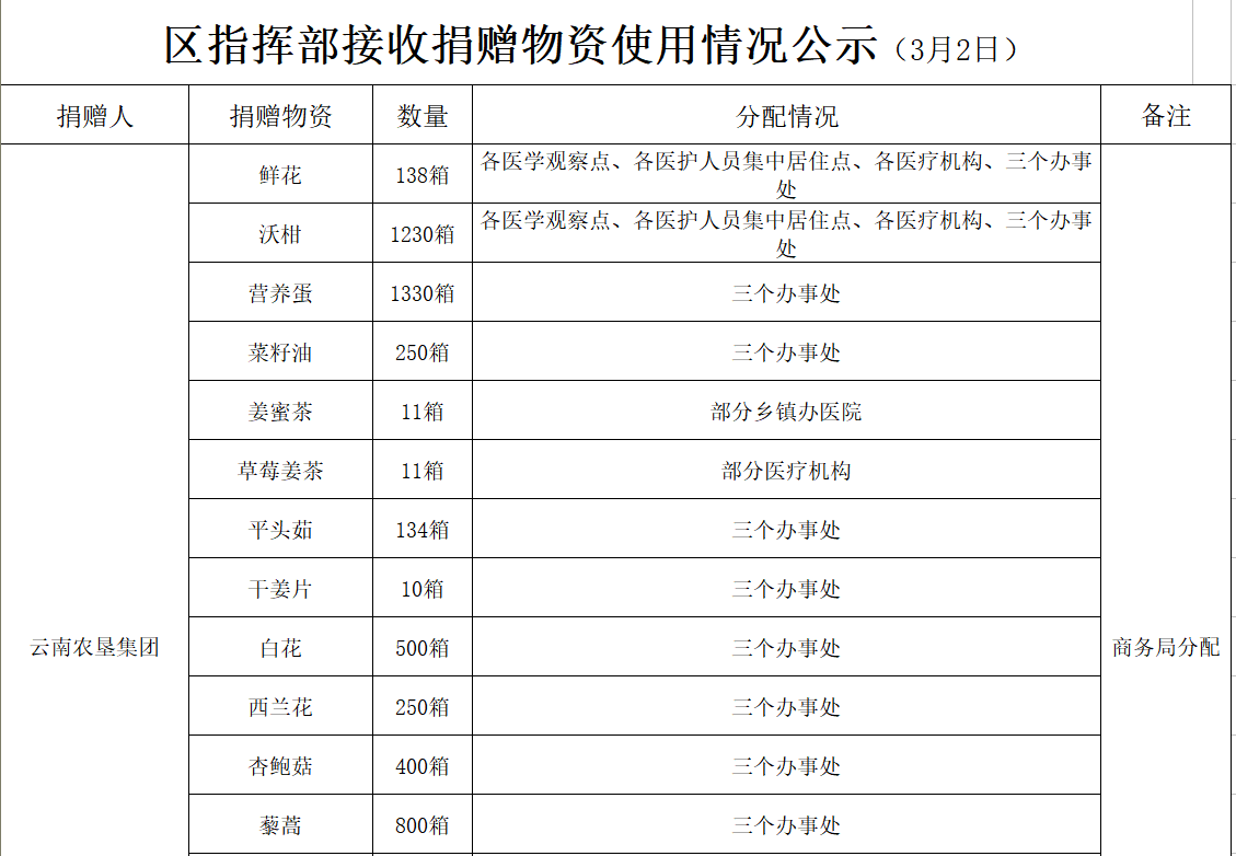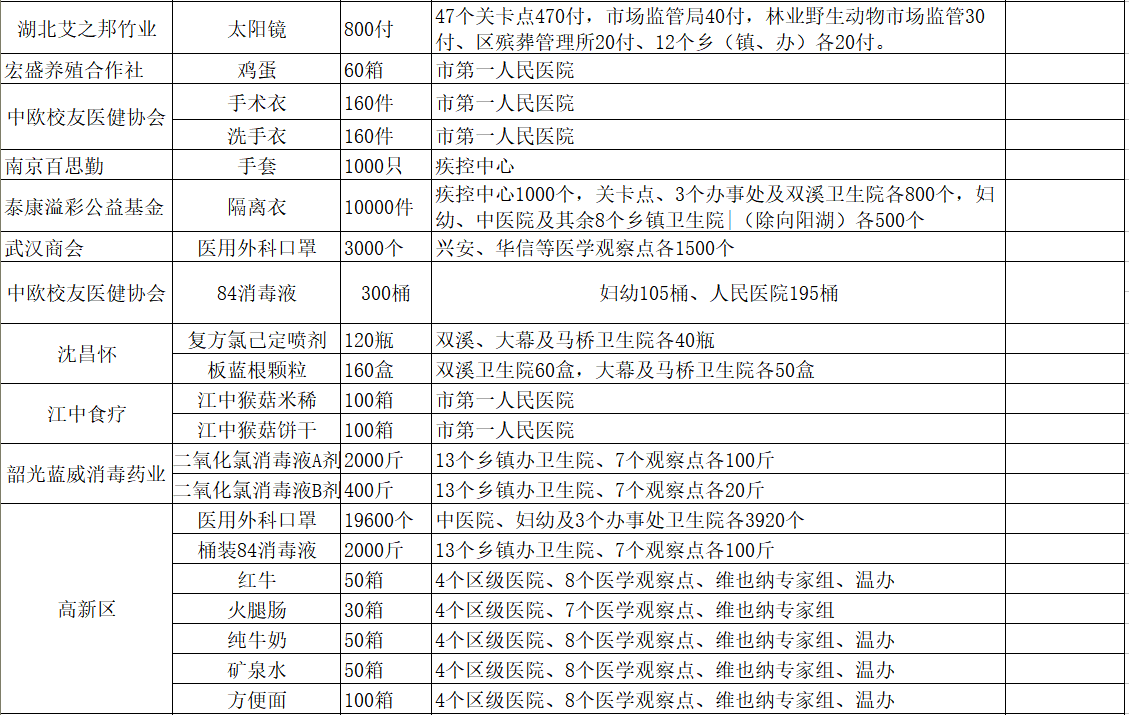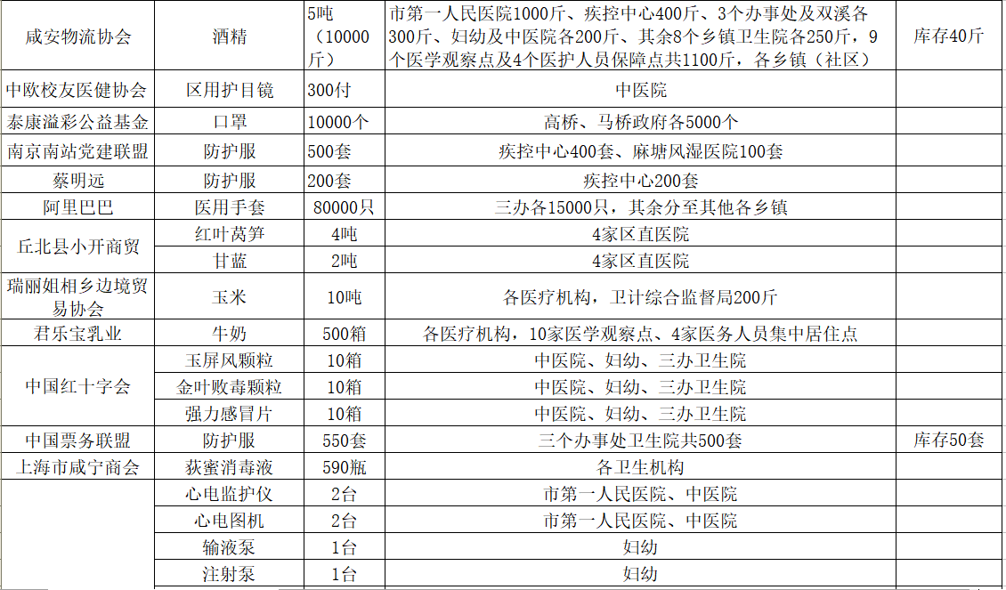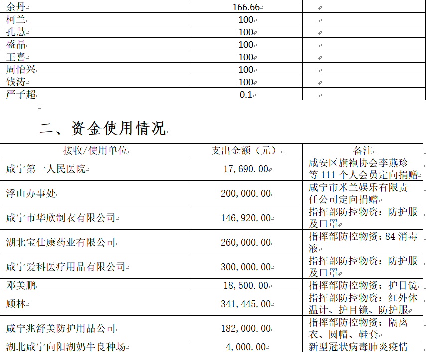 现将咸安区疫情防控指挥部接受社会各界捐赠的物资、资金使用情况公示如下,后续捐赠将持续公布,敬请关注!