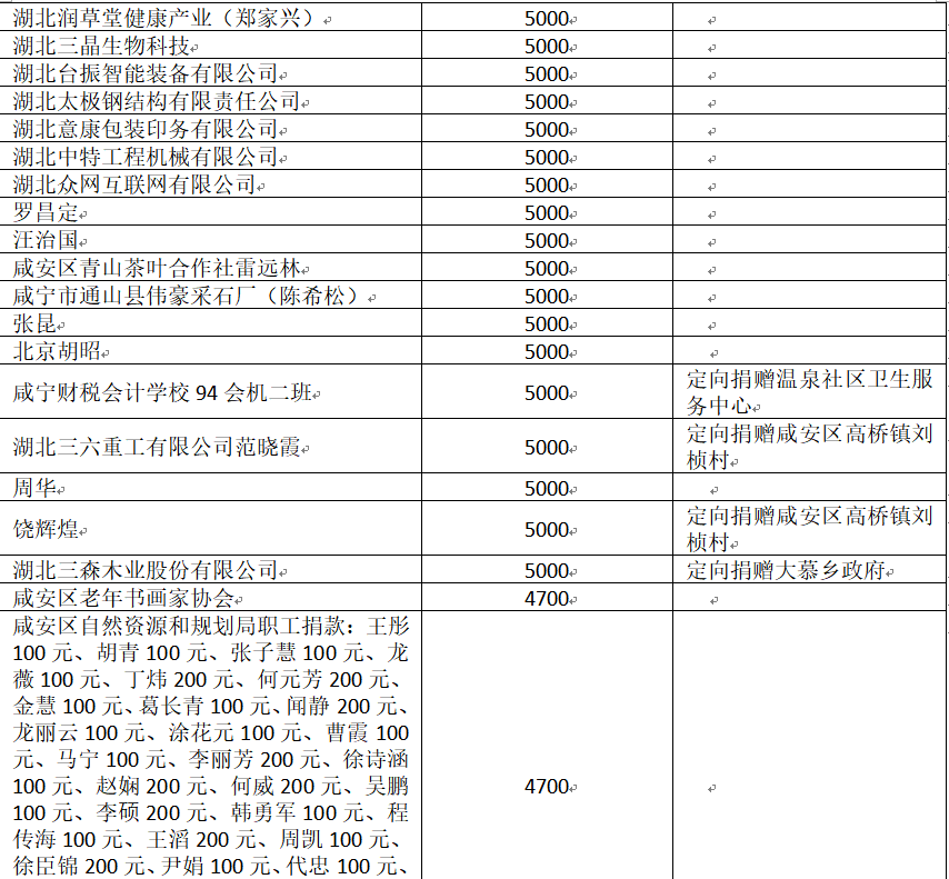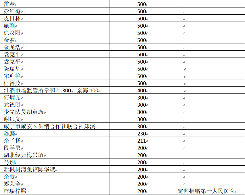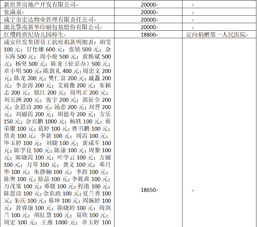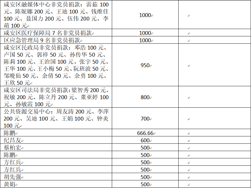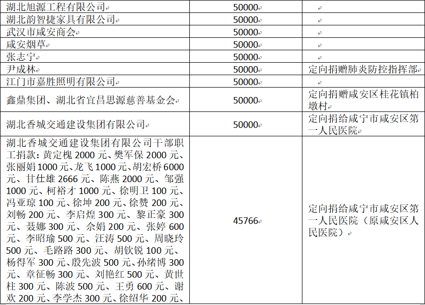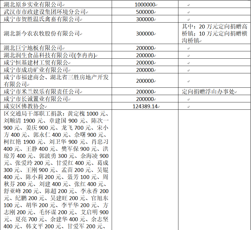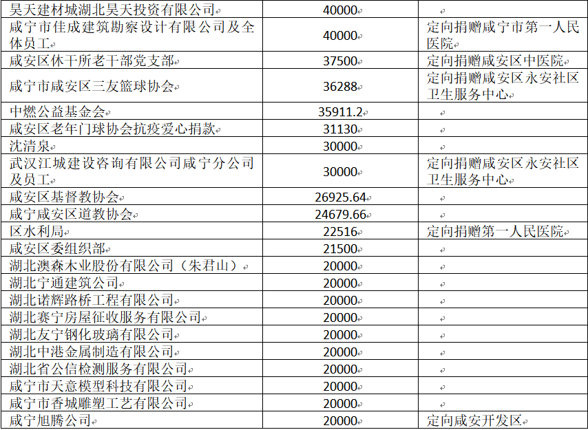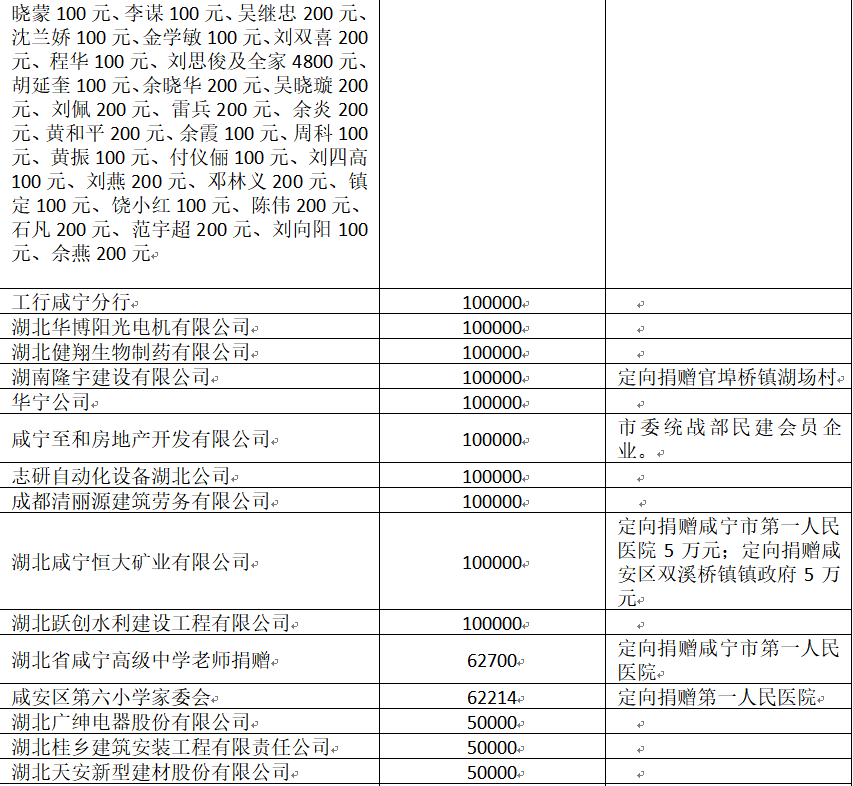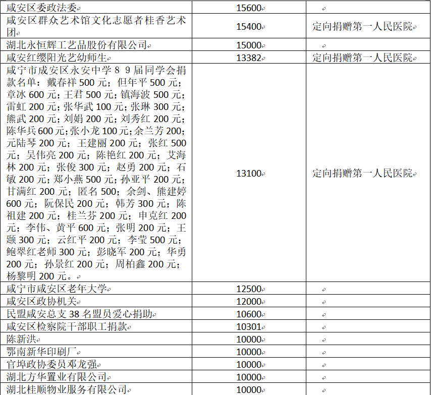 国家危难,匹夫有责;面对疫情,同舟共济!疫情发生以来,社会各界爱心如潮,关注、关心、支持咸安抗击疫情,慷慨解囊,无私奉献!
