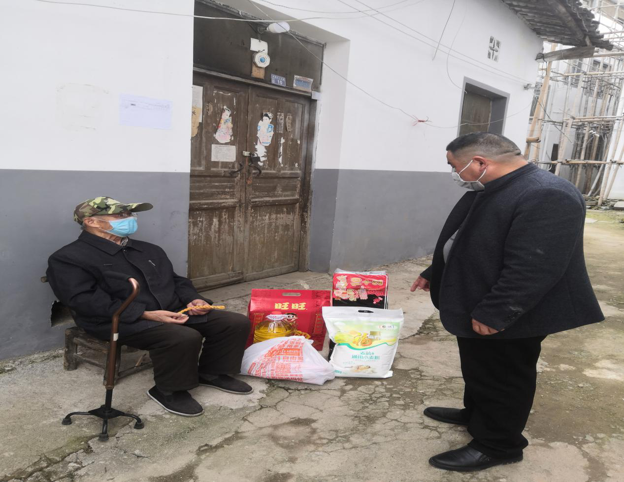 为了保障困难群众在疫情期间的生活,他安排妇联主席摸底村里的贫困留守老人,了解他们的生活状况,要给予他们更多关爱,在了解到15组贫困户何立金子女都没有回家过年,提着米、面粉、油、蔬菜、生活用品前往慰问,桂花镇下拨爱心蔬菜优先发放贫困户,妇联下拨爱心奶粉精准发放给贫困户家庭儿童和困难家庭儿童,保障他们在疫情期间的生活。