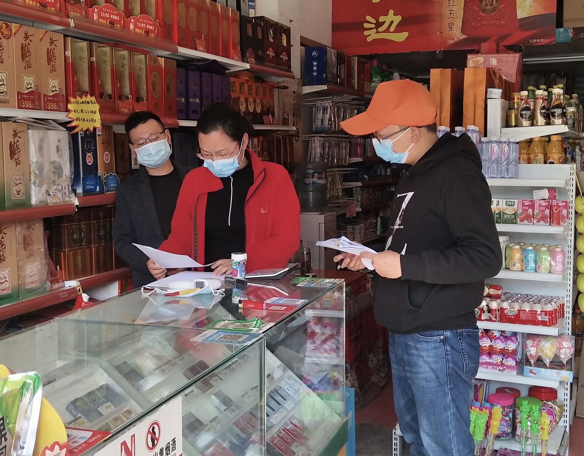在各营业门店,检查组重点查看返岗人员是否有健康证明、是否佩戴口罩,进店消费者体温测量否落实,店面消杀用品是否配备,店内外环境卫生是否整洁等。