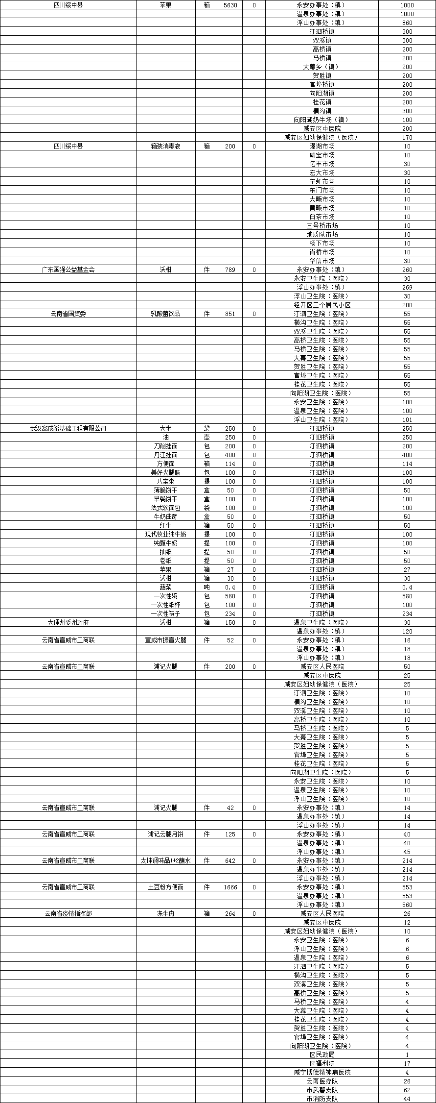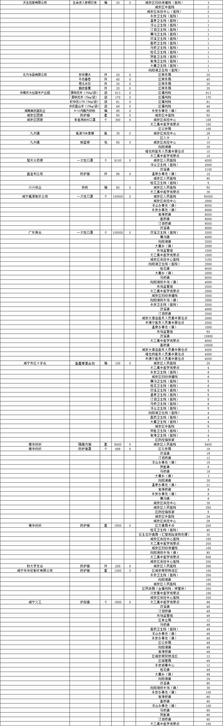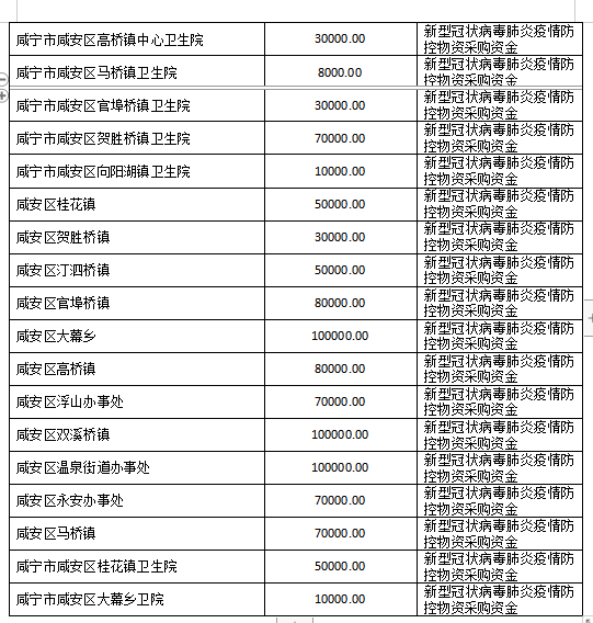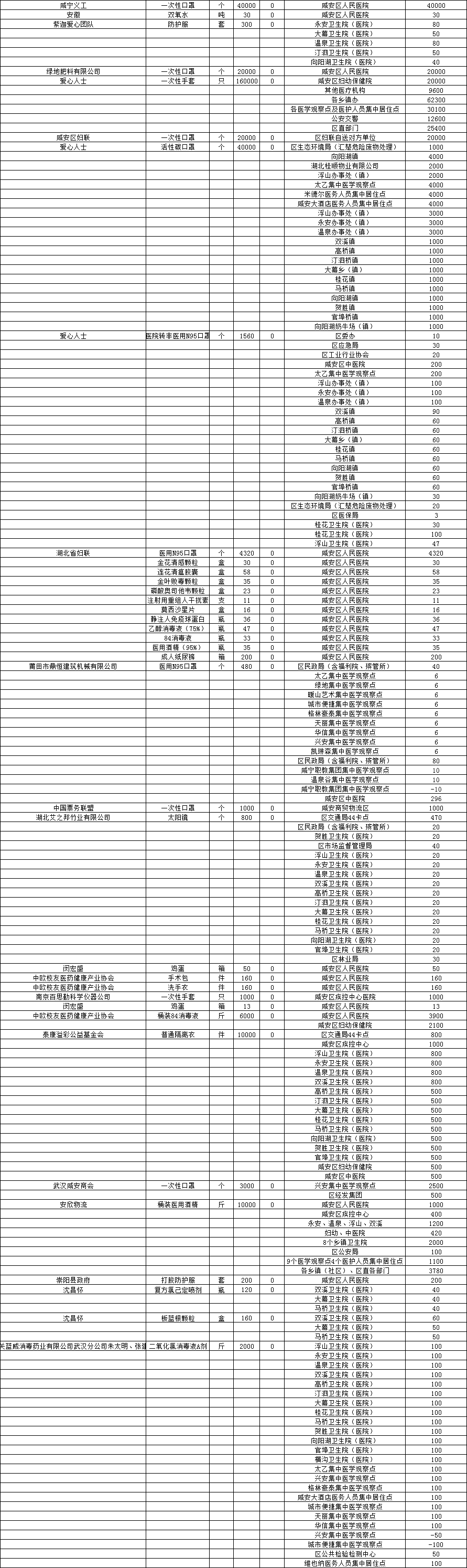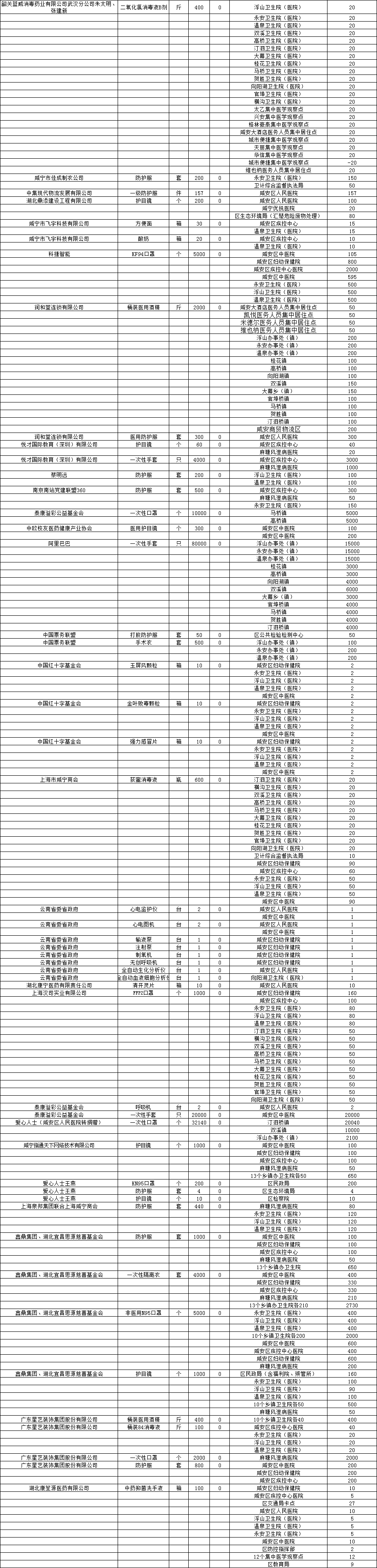 现将咸安区疫情防控指挥部接受社会各界捐赠的物资、资金使用情况公示如下,后续捐赠将持续公布,敬请关注!