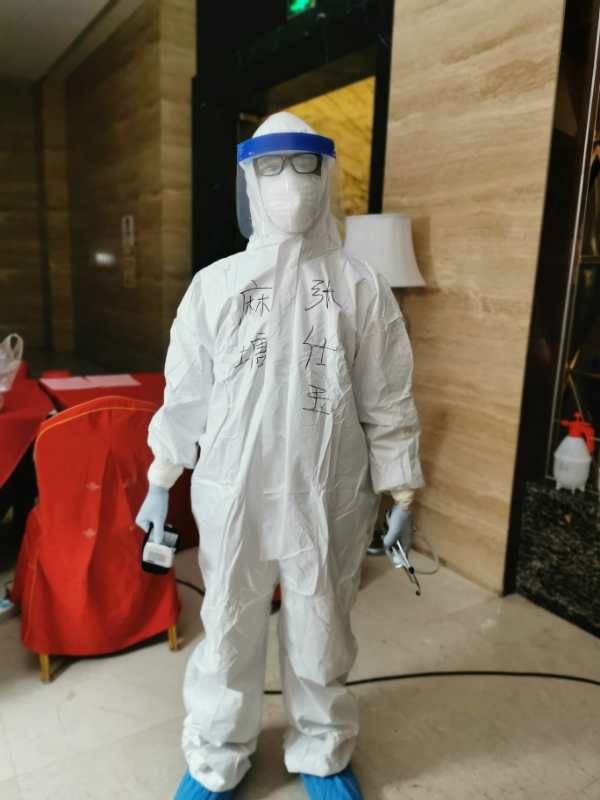 根据工作流程,张医生每天上午9点、晚上6点,都要亲自到各个房间去为观察者测体温、测血压、处理其他基础疾病、发放中药西药。观察者分布在酒店的七个楼层,酒店的布局复杂,穿着防护服,戴着口罩、面罩,密不透风,穿梭在酒店的各个房间,一趟下来衣服汗粘粘的,很不舒服,加上呼吸不畅,容易出现恶心头痛等缺氧症状,所以心里难免会有些焦躁,然而张医生很快调整过来,瘦小的身体继续穿梭在酒店的每个角落。