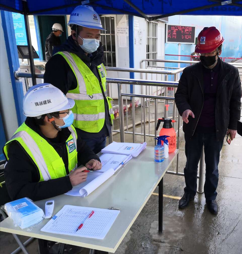 4月1日,位于浮山办事处附近的一处楼盘施工现场,记者老远就能听到建筑工地传出来的敲打声,在建筑工地门口设置了检测岗,对每一位进出的人员进行登记和消毒。