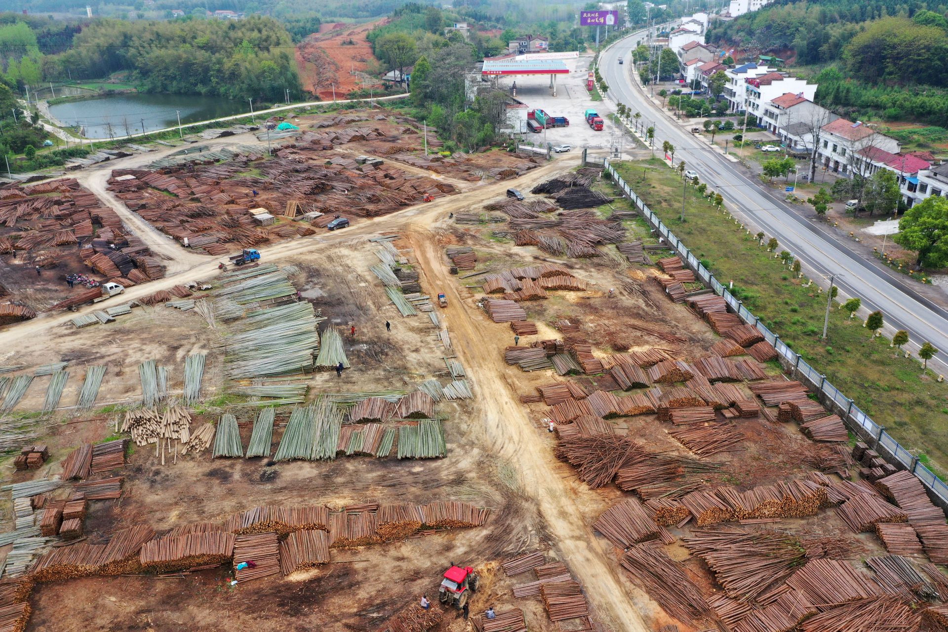 据了解,汀泗桥镇竹木市场位于107国道旁,这里集中整合了23家竹木经销商,承担着全镇一大半的木材收购、外销任务。该市场3月13日开始正式复工复产。