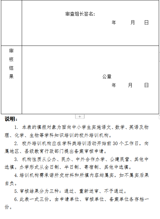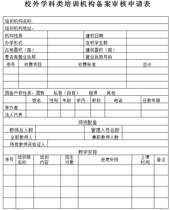 3.在教育局综合教育股领取《咸安区校外学科类培训机构备案审核表》(学科类培训机构填写)和《咸安区校外培训机构审批表》,如实填写。