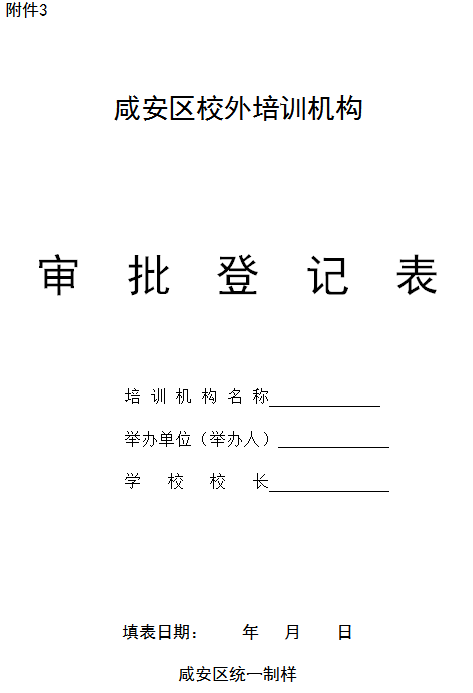 3.咸安区校外培训机构审批表