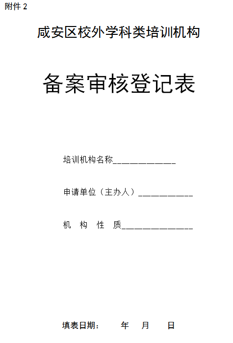 2.咸安区校外学科类培训机构备案审核登记表