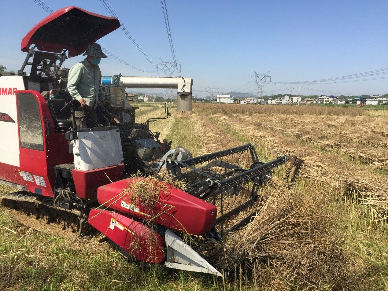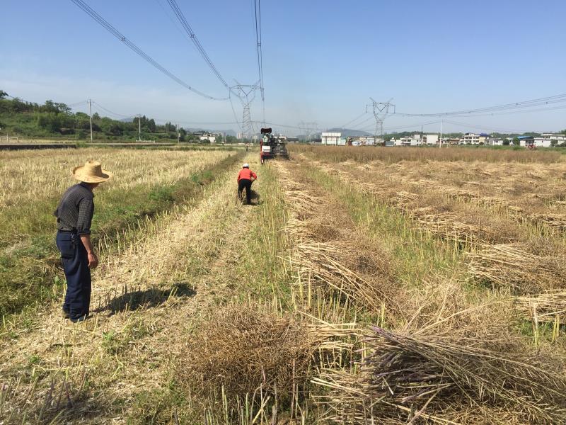 在一旁捆装菜籽的十几位村民洋溢着收获的喜悦,他们一致认为利用机械将油菜脱粒、装袋、秸杆粉碎还田沤肥再利用,不仅仅节省了人力,还避免了秸秆焚烧带来的环境污染和森林火灾隐患。