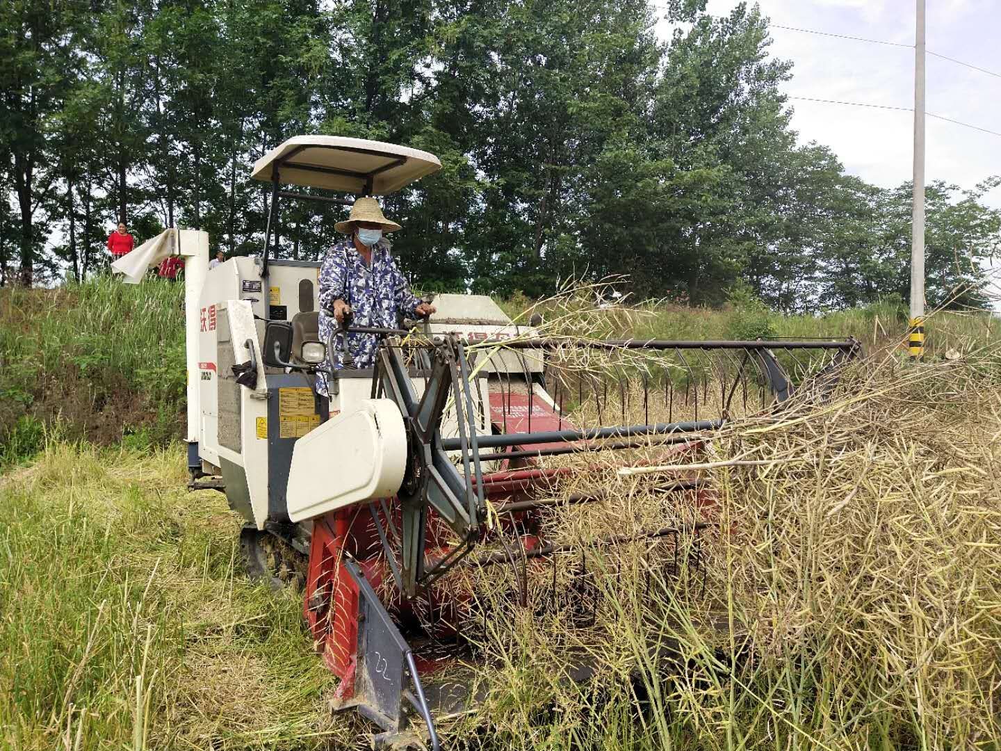 5月初,张公胜就开足马力运转这台联合收割机,不仅用于自家油菜的收割,而且还为本村其他农户服务。
