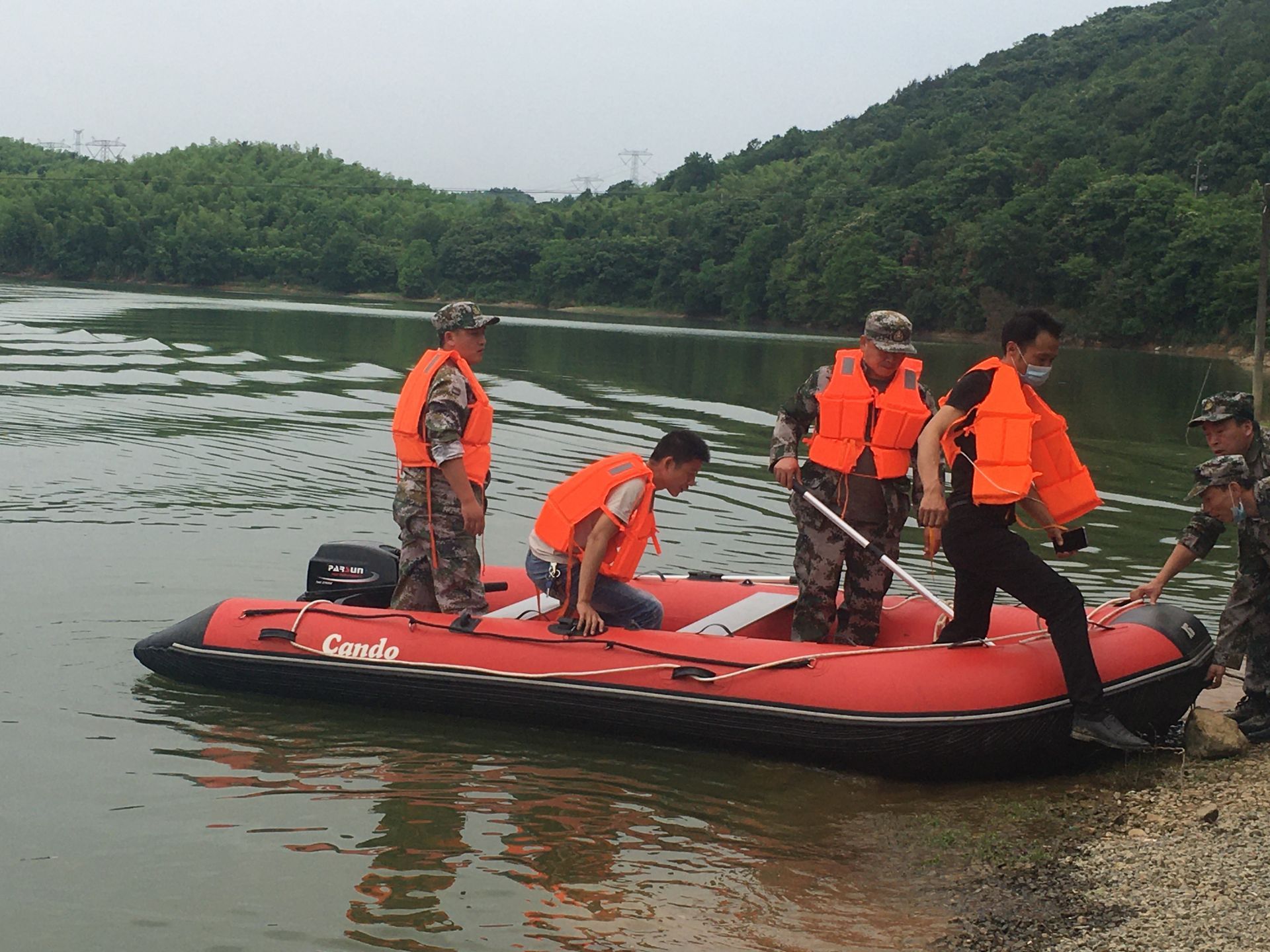 首先由防汛指挥长毛健发布预警信息,提示水库巡查员加强水库巡查,密切关注水库水位变化,发现问题及时报告;其次,预设水位已超过汛限水位0.5米,比溢洪道底板高出1米,水库下游居民可能被围困;最后,浮山办事处民兵应急队员统一着迷彩装,穿救生衣,迅速利用冲锋舟对受困的6名群众开展救援,将其成功转移到安全区域。经过2个多小时的演练,预设险情全部得到有效处置。