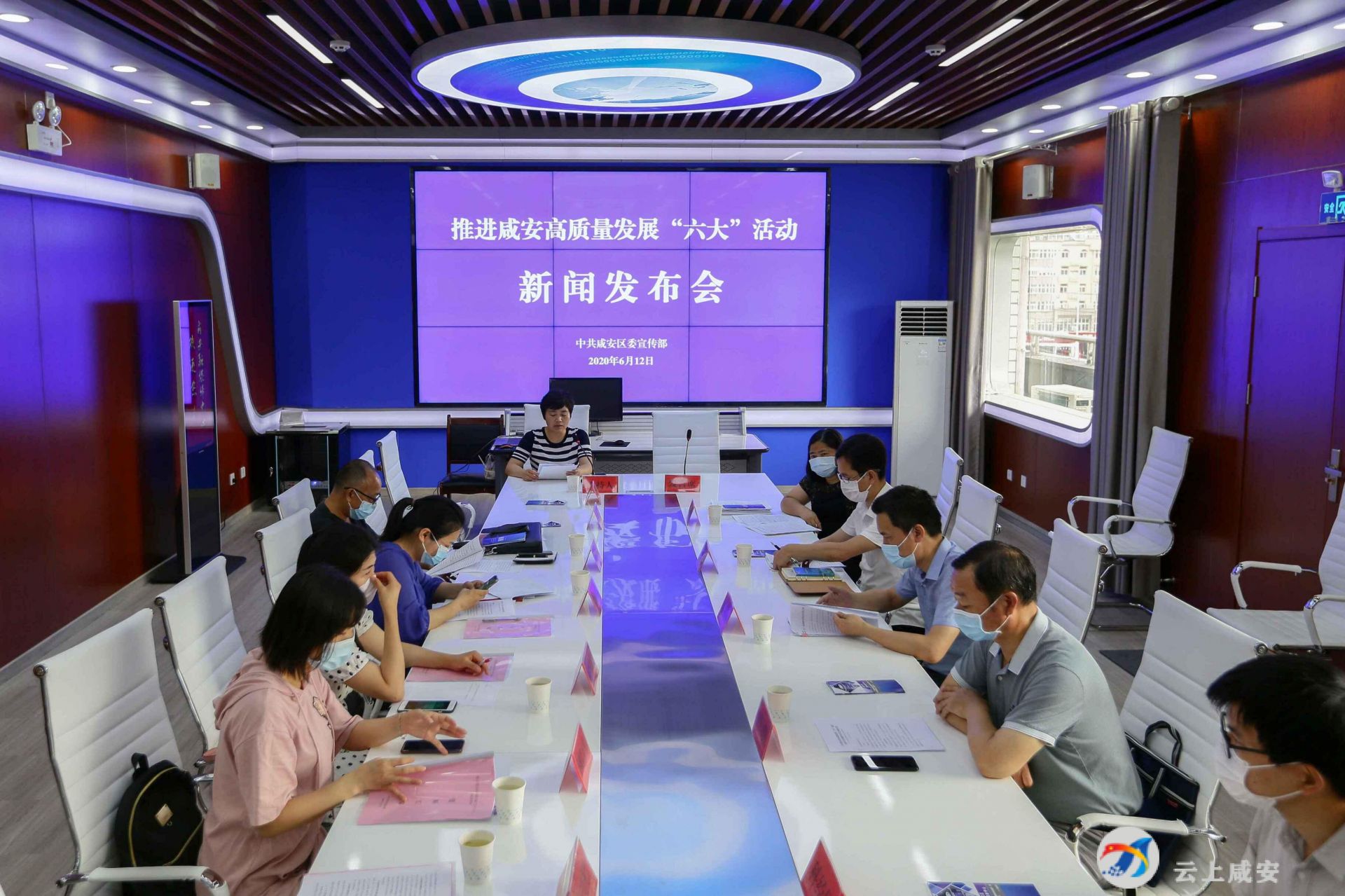 云上咸安报道(记者:卫东 陈宗谱 吴涛)6月12日,咸安区委宣传部组织的推进咸安高质量发展“六大”活动新闻发布会在区融媒体中心举行。区“六大”活动领导小组办公室、区委组织部、区自然资源和规划局、区发改局、区科经局等单位相关负责人介绍了活动开展情况,并就媒体记者关心的问题一一解答。
