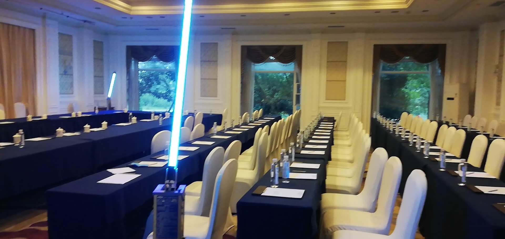 ▲8盏紫外线消毒灯对每个会场内的空气和物表消毒