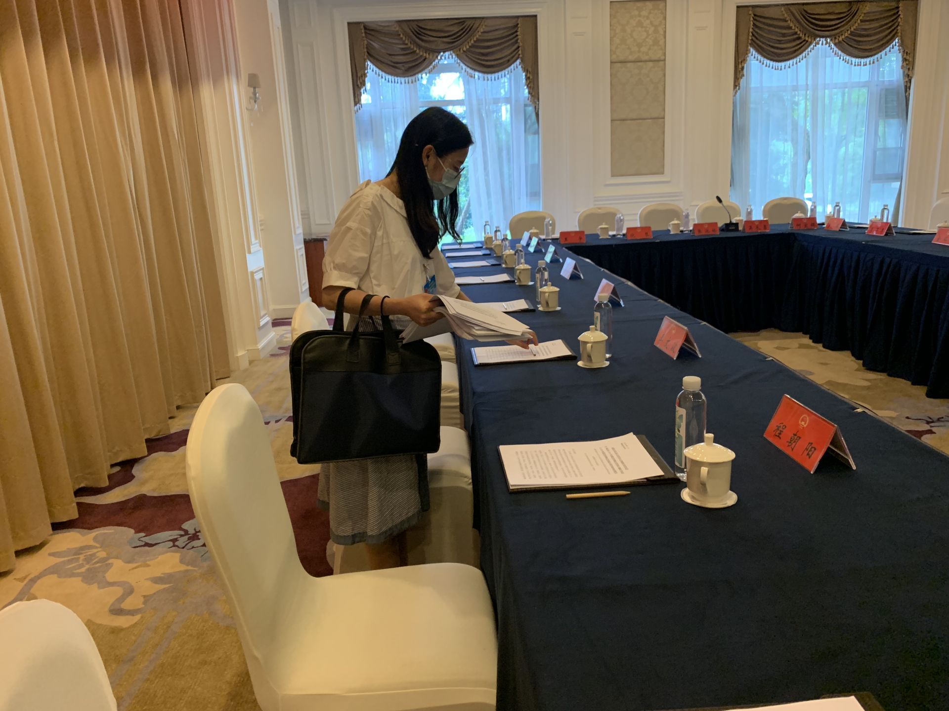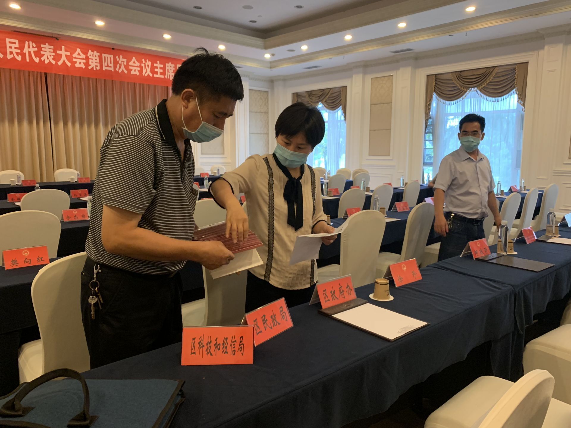 ▲会务保障人员正在摆放桌牌