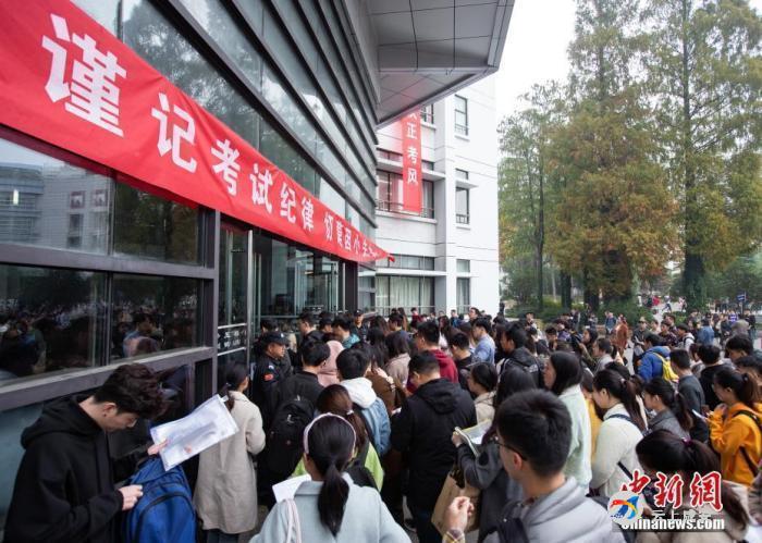 资料图:2019年11月24日,2020年度国考举行,图为考生在南京林业大学考点进场参加考试。 中新社发 苏阳 摄图片来源:CNSphoto