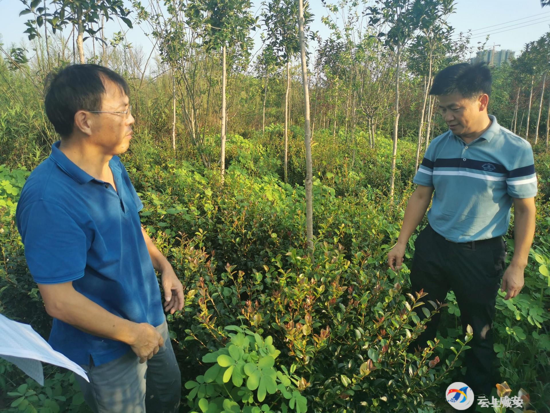 云上咸安报道(特约记者:陈涵)8月29日下午,官埠桥镇小泉村4组大路彭,村民彭爱民带着镇林业站站长刘建华,顶着烈日到自家的苗木基地,现场对苗木进行再次评估。